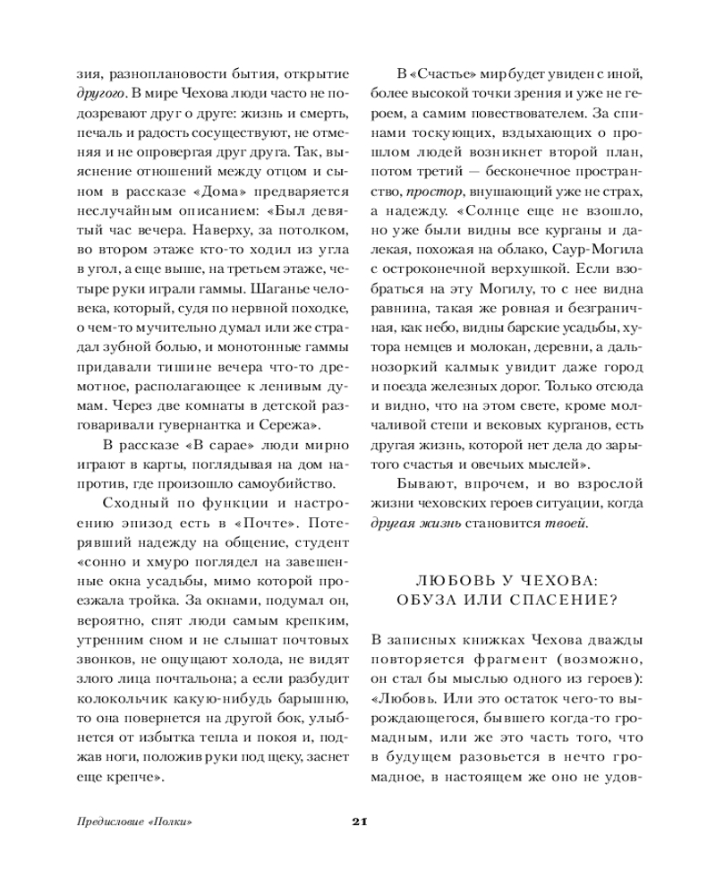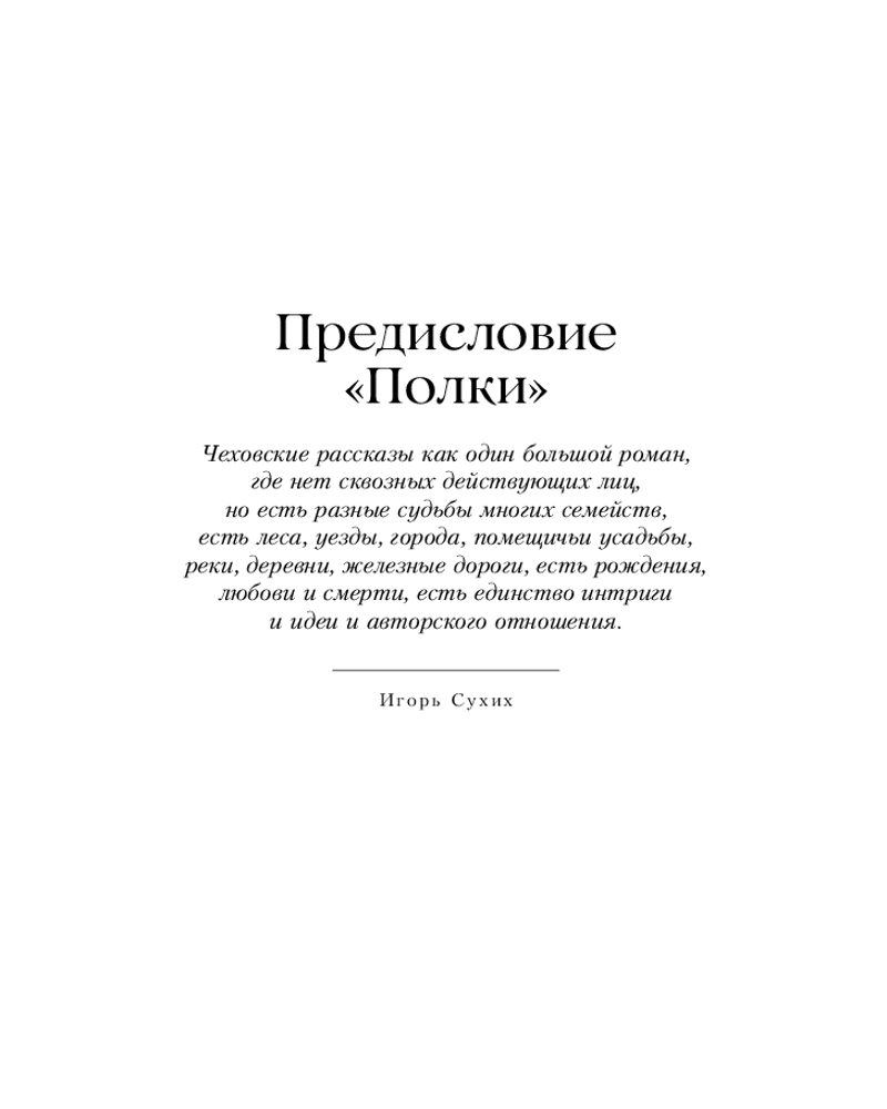 Серия: Главные книги русской литературы Чеховские рассказы как один большой роман, где нет сквозных действующих лиц, но есть единство интриги и авторского отношения, есть разные судьбы, есть леса, уезды, города, помещичьи усадьбы, реки, деревни, железные дороги, есть рождения, любови и смерти. |