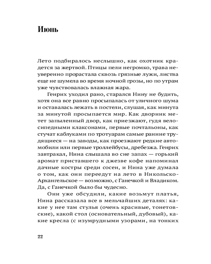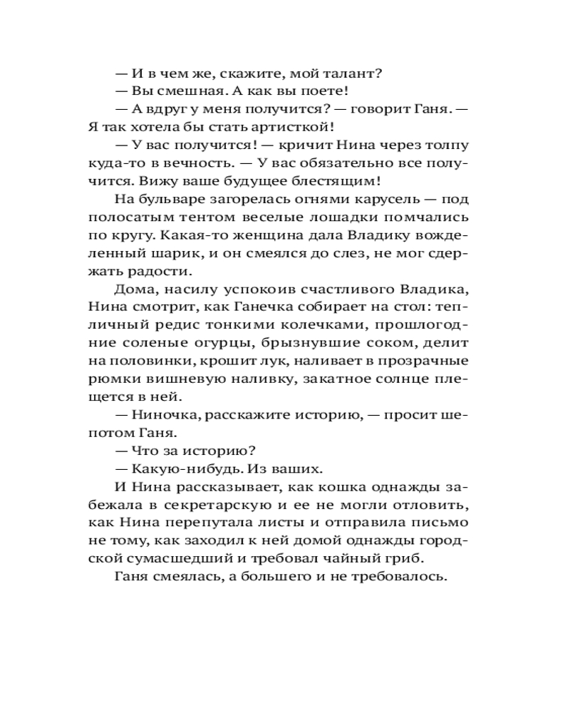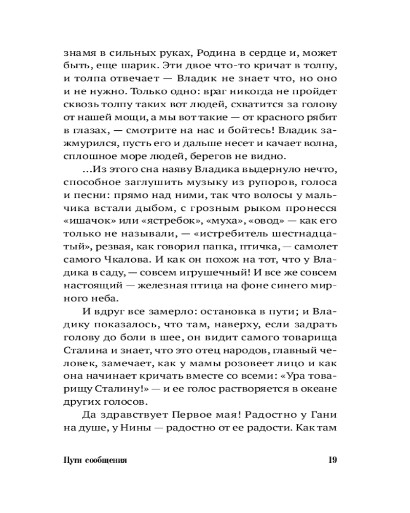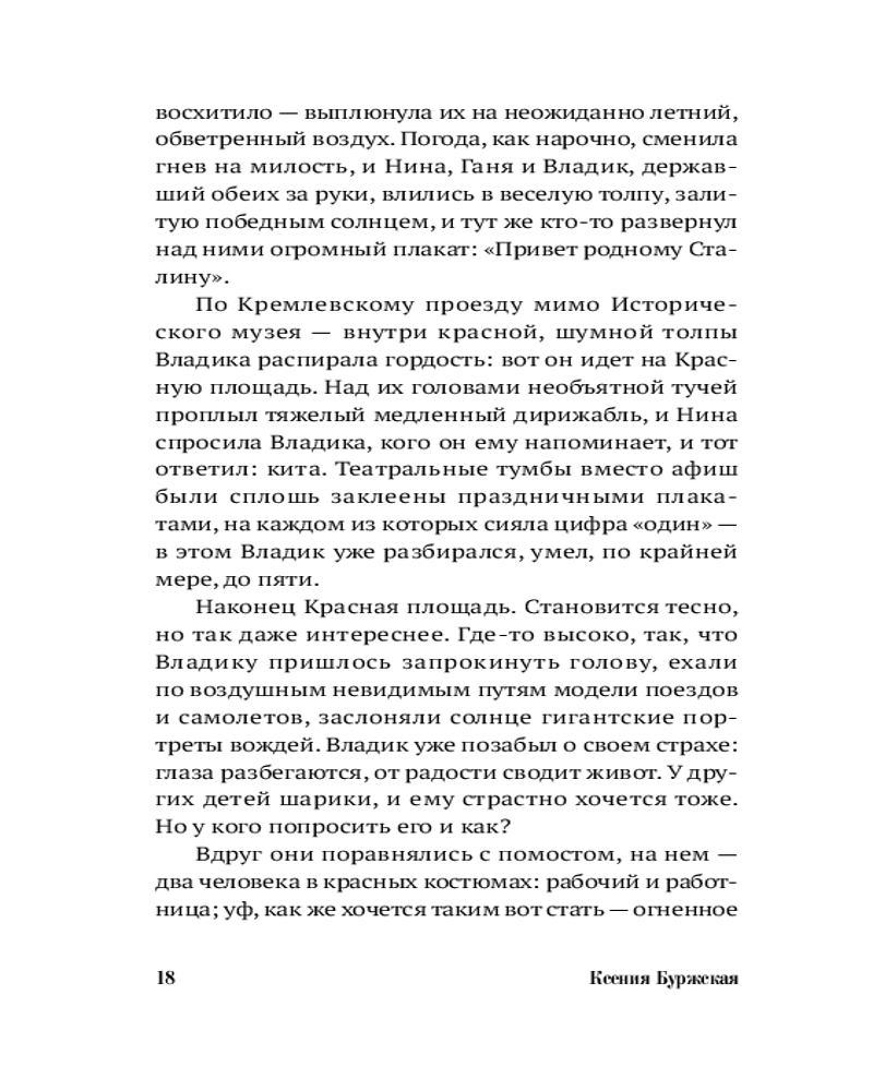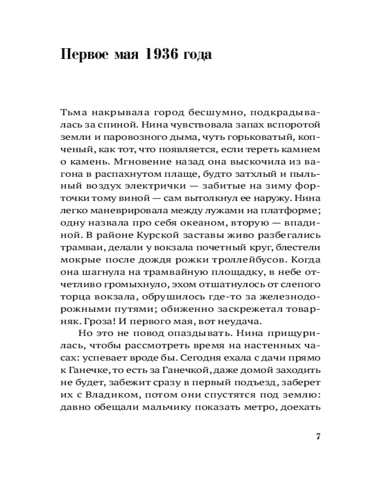 Сюжет романа — двойная временная спираль. Первое действие разворачивается в Москве 1936 года, второе — спустя более чем сто лет. Истории драматического прошлого и тоталитарного будущего сплетаются в высказывание о необходимости совершать невозможные выборы. Но в центре сюжета не приметы трагической эпохи и мрачное предостережение, а люди, их судьбы, их готовность сделать трудный выбор в пользу спасения чьей-то жизни. |