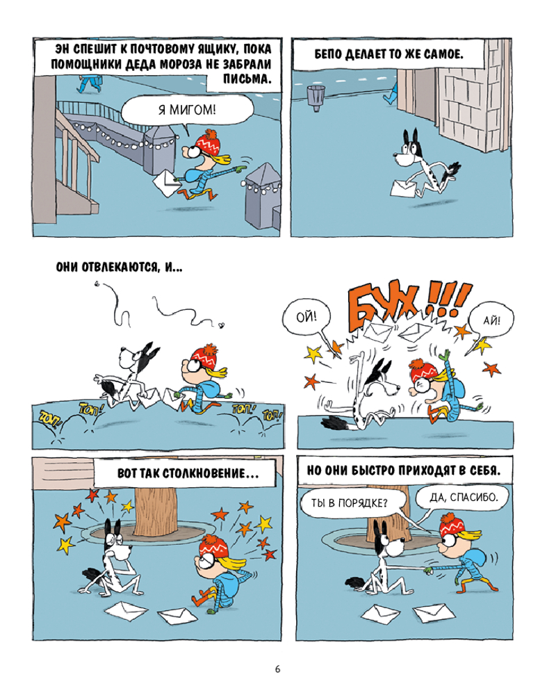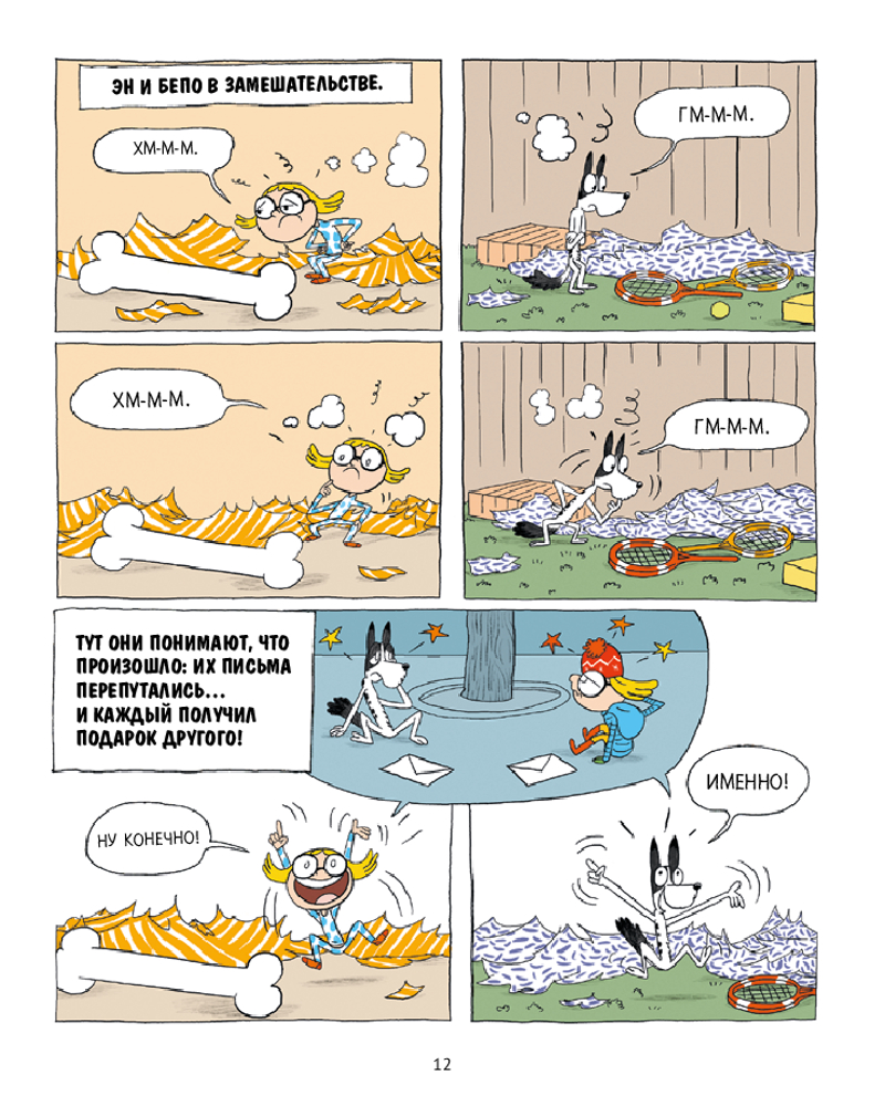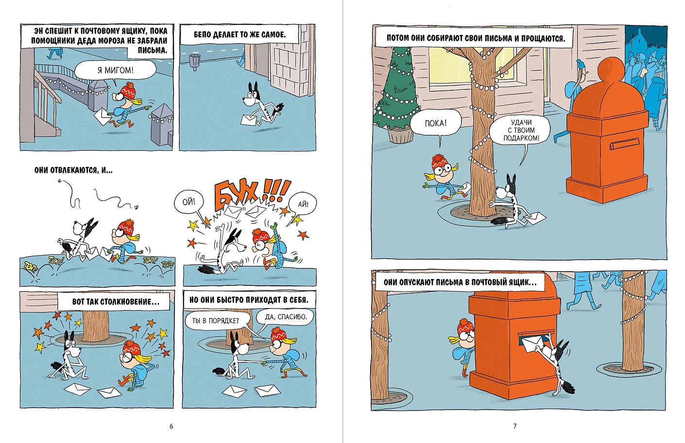Что может быть лучше одного подарка? Ну конечно же два! Эн и Бепо очень ждут подарков от Деда Мороза! Но что это? Их письма случайно перепутались, и Эн получает огромную кость, а Бепо — ракетки для бадминтона! Что делать в такой ситуации, как не пуститься на поиски друг друга, чтобы обменяться подарками? Эн и Бепо отправляются в незабываемое приключение, полное волшебных встреч и смешных ситуаций, чтобы найти лучший из всех подарков — настоящую дружбу. |