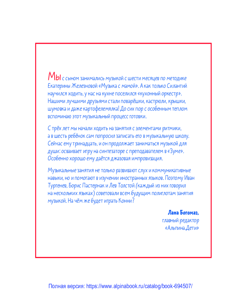 Серия: Лучший друг — Конни Дом Конни превратился в настоящий концертный зал! С утра до вечера там слышатся разные звуки. А всё потому, что Конни ходит в музыкальную школу и дома учит новые мелодии. Теперь она умеет играть на кастрюлях, сковородках и даже половниках! Но ей нужен настоящий музыкальный инструмент... На чём же будет играть Конни? |