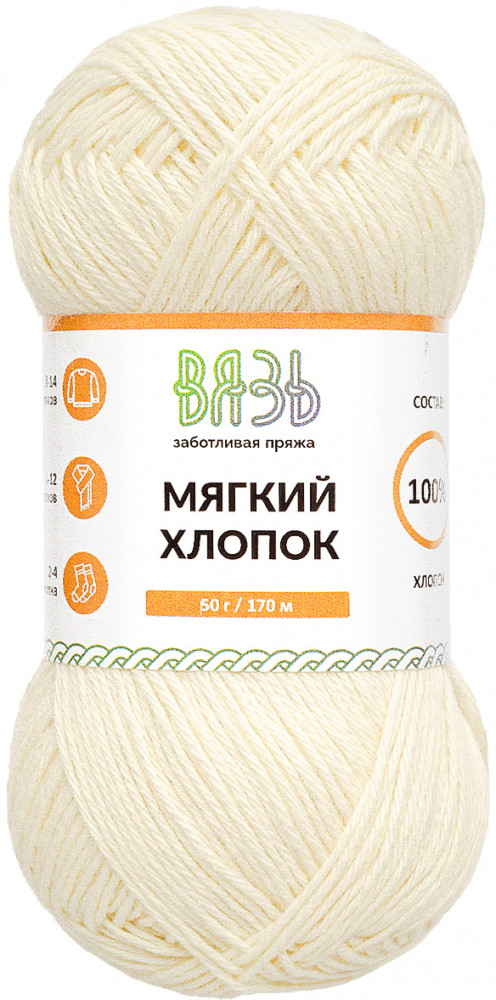 Вязь Пряжа для вязания «Мягкий хлопок», цвет 033 топленое молоко