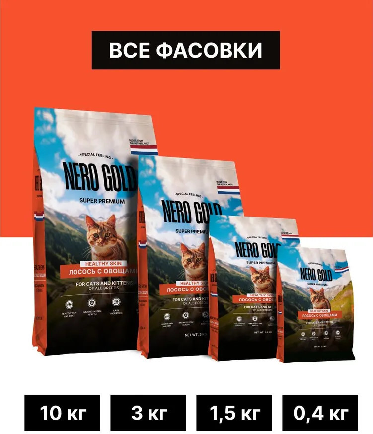Nero Gold Корм сухой для кошек и котят с лососем и овощами