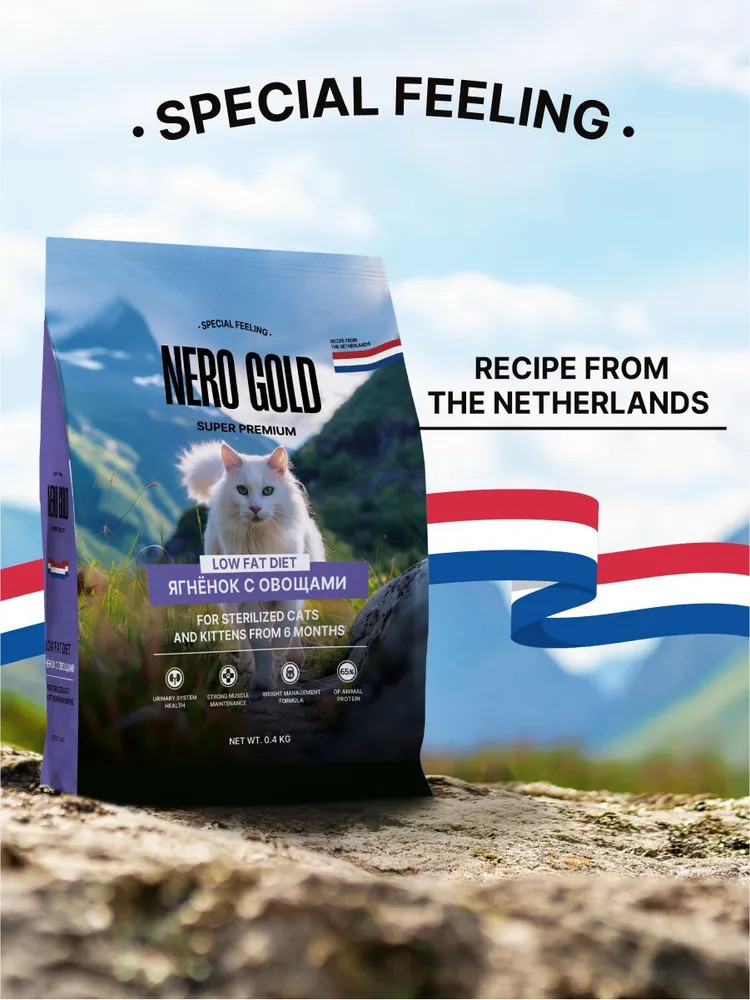 Nero Gold Корм сухой для стерилизованных кошек и котят с мясом ягненка и овощами
