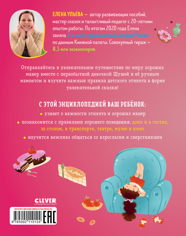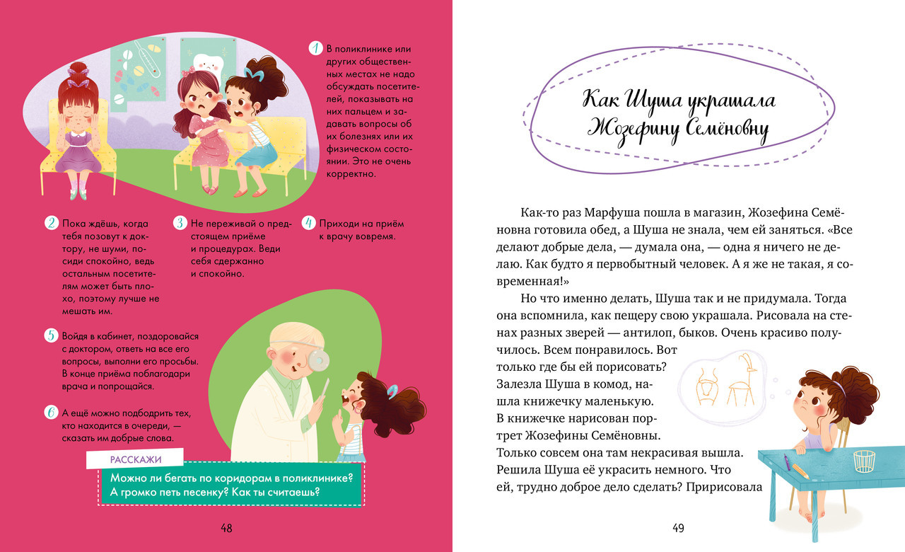 Серия: Энциклопедия в сказках Энциклопедия в сказках «Этикет» легко и ненавязчиво научит ребенка важным правилам поведения, которые пригодятся на протяжении всей жизни. Под обложкой ждут веселые сказки о хороших манерах с поучительными страничками для закрепления знаний и вопросами на понимание прочитанного.Книга будет интересна как девочкам, так и мальчикам. Из сказок маленькие читатели узнают: как следует вести себя за столом и в гостях, почему важен опрятный внешний вид, как вежливо общаться со сверстниками и взрослыми, почему важно быть вежливым и воспитанным человеком и многое-многое другое. Книга покажет ребенку, как приятно иметь дело с тактичным, вежливым человеком и как порой сложно разговаривать с диким и невоспитанным. |