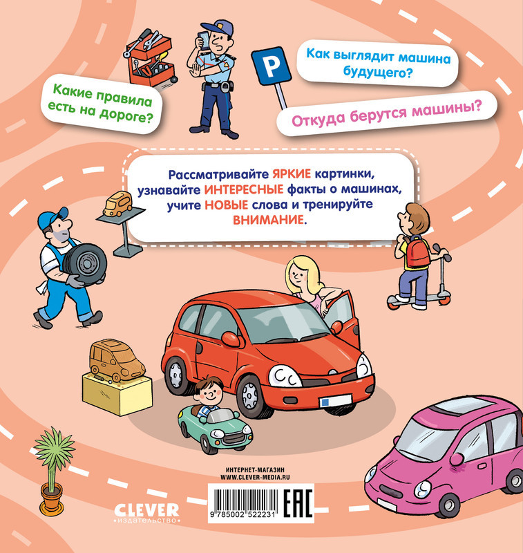Серия: Как устроен мир? «Машины» — увлекательная книга для маленьких автолюбителей! Эта яркая познавательная книга откроет малышам удивительный мир транспорта! На страницах с детальными иллюстрациями ребенок познакомится с разными машинами — от привычных легковушек до необычной спецтехники и футуристичных машин будущего. Книга просто и интересно отвечает на детские вопросы: как делают машины, кто их чинит, какие правила нужно соблюдать на дороге. Игра «найди и покажи» превращает чтение в веселое приключение, развивая внимание и память. |