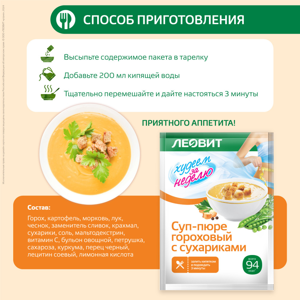 Худеем за неделю Суп-пюре гороховый с сухариками диетический