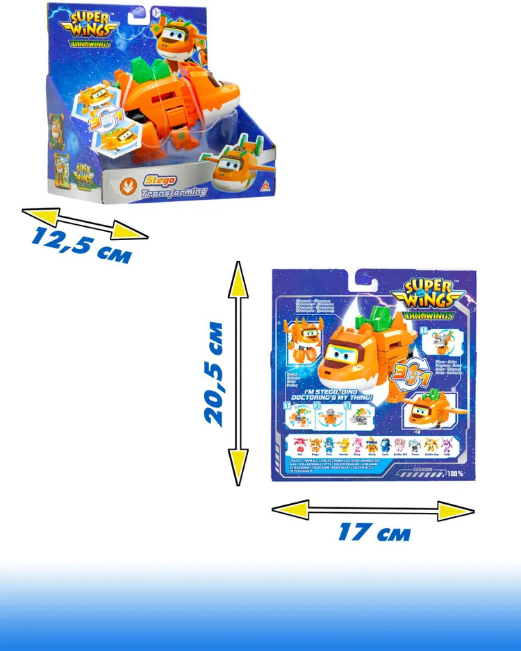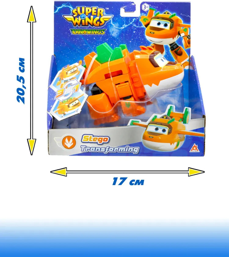 Погрузитесь в увлекательный мир воздушных приключений вместе с роботом-трансформером Стего из любимого мультфильма «Супер Крылья»! Стего — мощный и добрый герой, который всегда приходит на помощь друзьям! В мультике Стего славится своей силой и спокойным характером: он защищает команду и помогает справляться с тяжёлыми задачами.