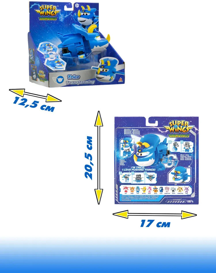 Погрузитесь в увлекательный мир воздушных приключений вместе с роботом-трансформером Трико из любимого мультфильма «Супер Крылья»! Трико — смелый и проворный персонаж из «Супер Крылья» (сезон 9). В мультике Трико быстро реагирует на непредвиденные ситуации, может маневрировать в сложных условиях и придумывать креативные решения. |
