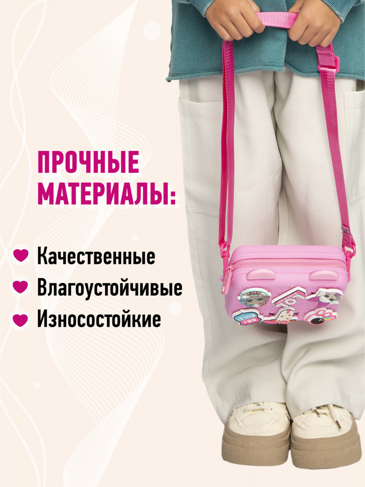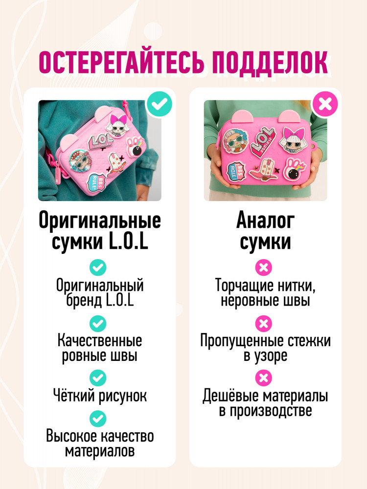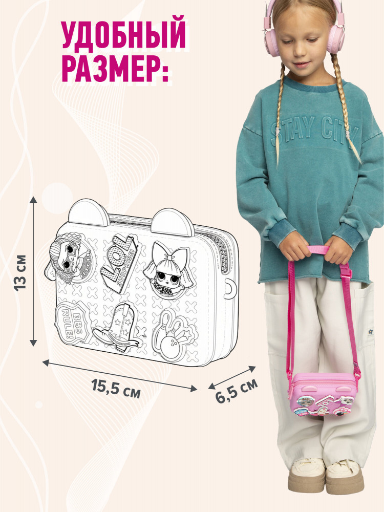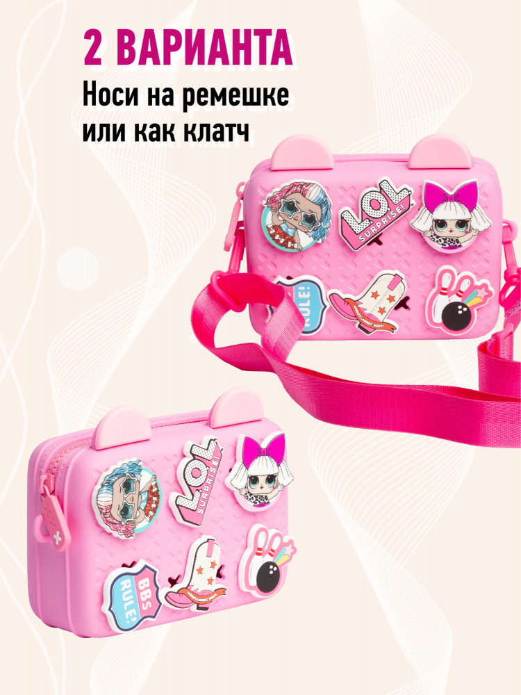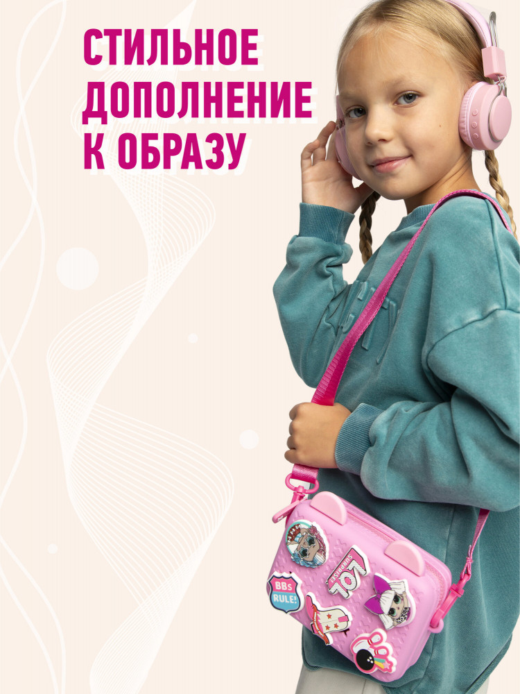 Яркая розовая сумка с дизайном по мотивам популярного L.O.L. Surprise! станет стильным аксессуаром для девочек. Её оригинальный внешний вид с ушками и съёмными элементами оценит каждая юная модница! Аксессуары-джиббитсы можно легко менять, создавая уникальный образ хоть каждый день. Эта функциональная модель подойдёт для повседневного использования. Сумочка достаточно вместительна для хранения монеток, карточек и других мелочей. Сумка с ремешком прекрасно держит форму, что обеспечивает его долговечность и сохранение аккуратного вида даже при активном использовании. Лёгкость в уходе позволит быстро очищать аксессуар от загрязнений, сохраняя его ярким и привлекательным на протяжении длительного времени. Сумка с милыми ушками станет отличным подарком для каждой маленькой поклонницы L.O.L. Surprise! Это не просто дополнение к образу, а настоящая находка для творческих личностей, которые любят экспериментировать с модой. Подарите своему ребёнку возможность выделяться среди других с помощью этого замечательного аксессуара! В комплект входит 6 джиббитсов. Сумочка подойдёт как для повседневных прогулок, так и для особых случаев — он отлично дополняет наряд в день рождения или праздники. Позвольте вашему ребёнку создать свой уникальный стиль! Этот рюкзак — не просто сумка для хранения вещей, а особый акцент в образе юной модницы. Регулируемые ремешки обеспечивают комфорт при ношении, а компактные размеры делают его подходящим даже для самых маленьких модниц. рюкзак представлен в двух ярких цветах: бирюзовый и розовый — выберите тот, что понравится именно вам. Стильный и практичный выбор на каждый день!