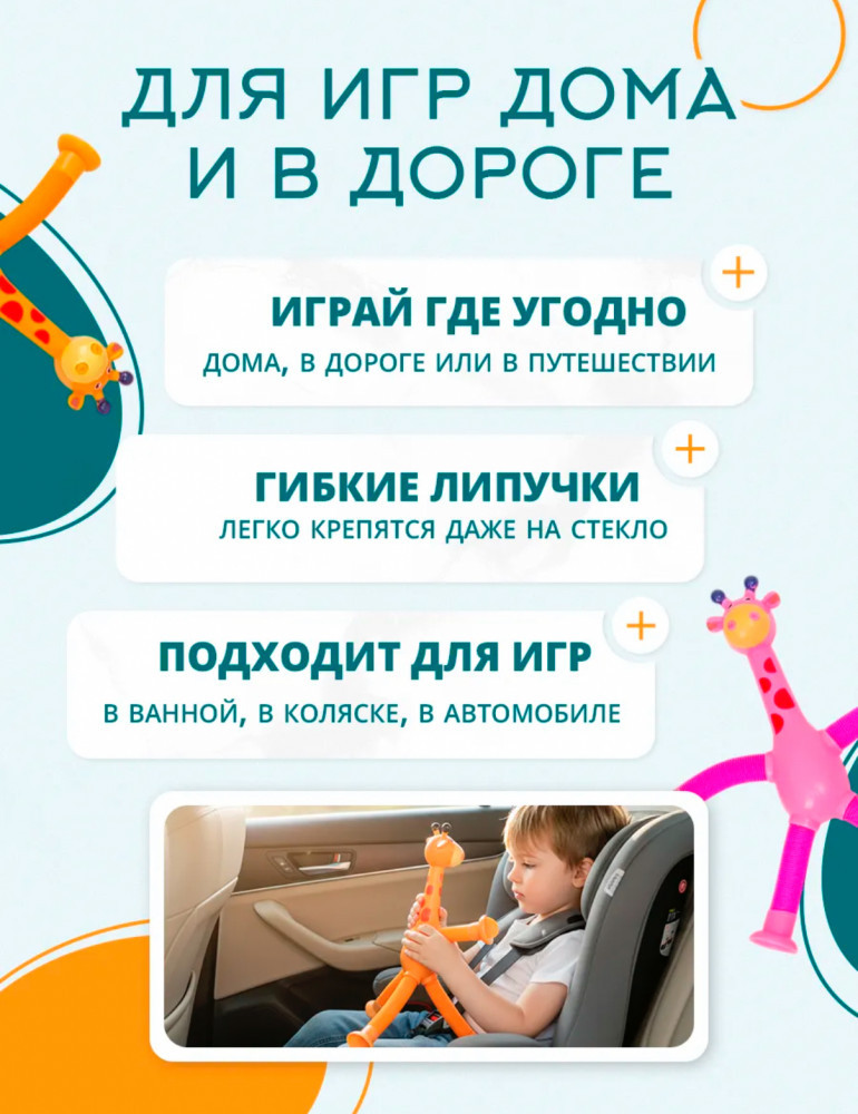 Подарите радость малышу с оригинальными игрушками для детей — яркий набор жирафиков отлично подойдет как для девочек, так и для мальчиков. Такие милые фигурки станут отличным выбором для веселых игр дома, на прогулке или в гостях у друзей. Каждый жирафик выполнен из приятного на ощупь материала, что делает их настоящей находкой для малышей, которые только начинают познавать мир через тактильные ощущения. Набор понравится детям благодаря насыщенным оттенкам — фиолетовый, розовый, голубой и оранжевый жирафики на присоках легко привлекут внимание ребенка и помогут развивать воображение. Благодаря компактной форме игрушки удобно брать с собой на любые мероприятия или использовать в качестве антистресс аксессуара даже взрослым. Приятная текстура помогает снять напряжение после активного дня или долгих занятий. |
