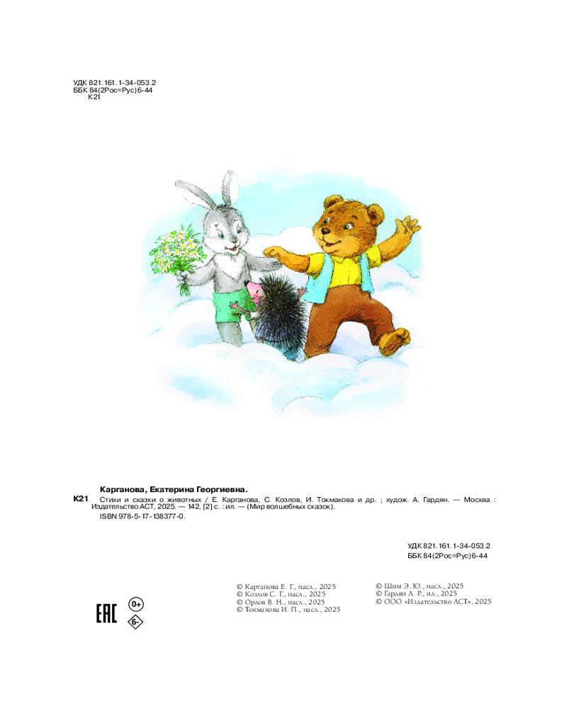 Стихи и сказки о животныхЕкатерина Георгиевна Карганова, Ирина Петровна Токмакова, Сергей Григорьевич Козлов новинка -20%