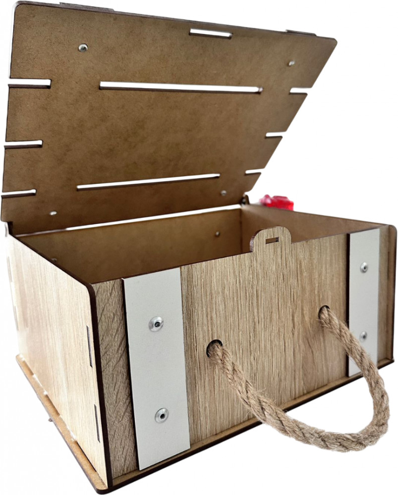 Добро пожаловать в мир изысканных подарков. Представляем вашему вниманию деревянную подарочную коробку с декоративным замком, выполненную в виде чемодана размером 23×19×7 см. Это идеальное решение для упаковки самого оригинального подарка. Наша коробка сочетает в себе элегантность и неповторимый дизайн. Выносная табличка с надписью «С новым годом», декоративные полоски, заклепки, ручка из джутового каната, всё это делает наши коробки невероятно изысканными и универсальными для любого повода. А высококачественные материалы из древесины защитят ваш подарок от повреждений во время транспортировки. |
