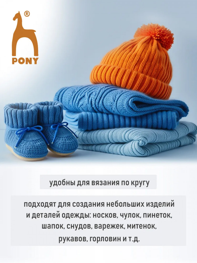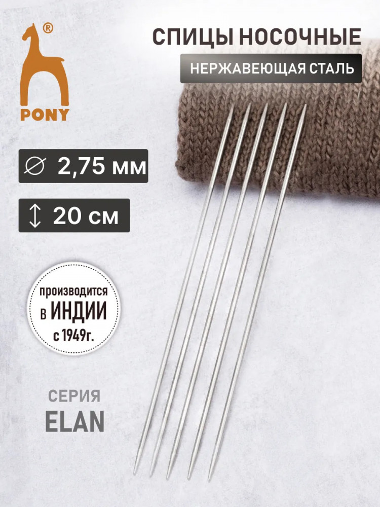 В комплект входят пять спиц одинаковой длины, без ограничителей. Классическая конфигурация- четыре спицы для распределения петель, образующих круговую вязку, и пятая спица, используемая для активного вязания. Важно помнить, что четкое распределение петель по четырем спицам обеспечивает равномерное натяжение и предотвращает искажения готового изделия. Пятая спица, работающая как основной инструмент, позволяет свободно манипулировать петлями и формировать нужный узор. С помощью носочных спиц Pony вы сможете создать уникальные и качественные вязаные изделия, воплощая в жизнь самые смелые идеи. Выбирая носочные спицы для вязания Pony Elan, вы инвестируете в качество и удовольствие от творческого процесса.