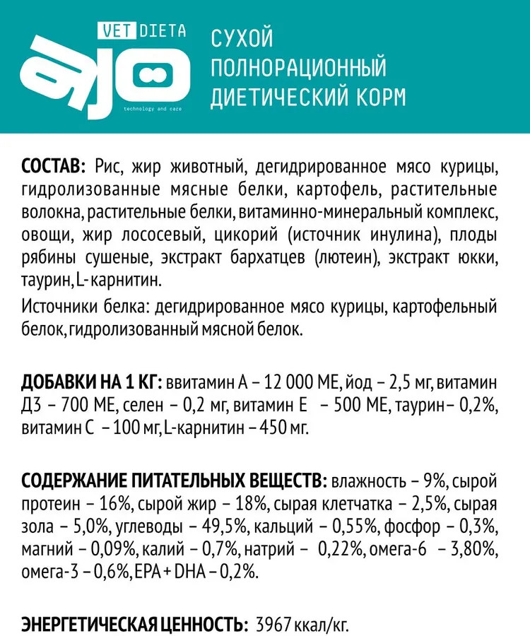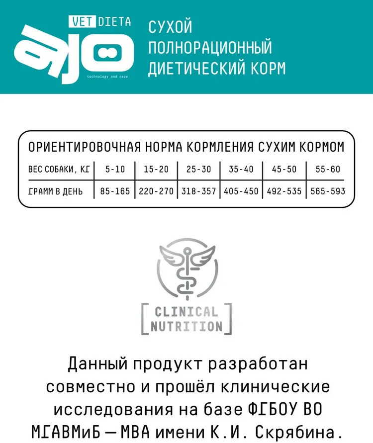 AJO Корм для собак при хронической болезни почек «Vet Dieta Renal»