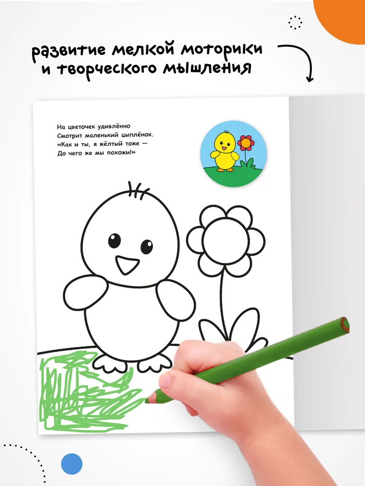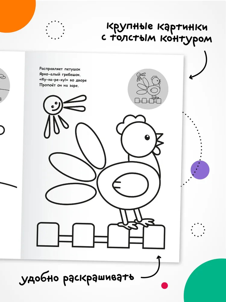 Серия: Раскраска для малышей с наклейками Книга «В деревне» из серии «Раскраска для малышей с наклейками» отлично подойдет для знакомства малыша с окружающим миром, развития мелкой моторики и творческого мышления. Яркие круглые наклейки помогут определиться с выбором цвета, крупные картинки с толстым контуром легко раскрашивать, а забавные стишки помогают запоминать разные объекты. Развивайтесь играючи! |
