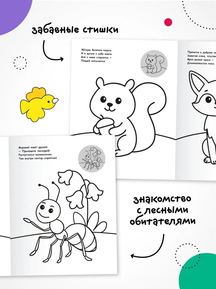 Серия: Раскраска для малышей с наклейками Книга «В лесу» из серии «Раскраска для малышей с наклейками» отлично подойдет для знакомства малыша с окружающим миром, развития мелкой моторики и творческого мышления. Яркие круглые наклейки помогут определиться с выбором цвета, крупные картинки с толстым контуром легко раскрашивать, а забавные стишки помогают запоминать разные объекты. Развивайтесь играючи! |