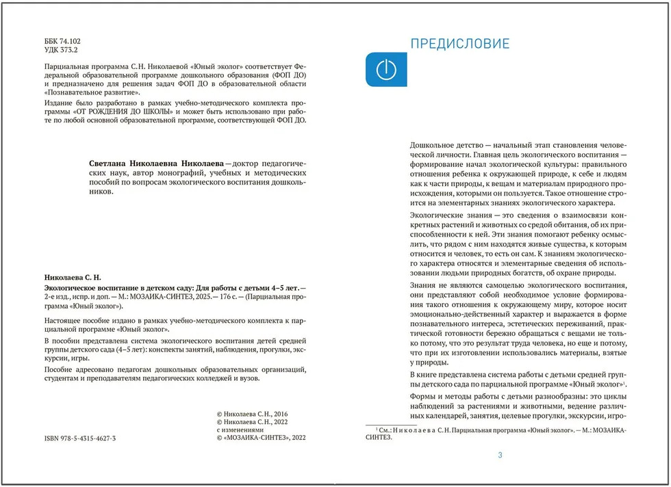 Серия: От рождения до школы Парциальная программа С.Н. Николаевой «Юный эколог» рекомендуется в рамках реализации принципа вариативности содержания программы «От рождения до школы». В данном пособии представлена система работы по экологическому воспитанию детей средней группы детского сада 4-5 лет. Предлагаемая система работы с детьми включает в себя разные формы и методы: это циклы наблюдений за растениями и животными, ведение различных календарей, занятия, целевые прогулки, экскурсии, игровые обучающие ситуации с использованием игрушек и литературных персонажей. Пособие адресовано педагогам дошкольных образовательных организаций, студентам и преподавателям педагогических колледжей и вузов. |