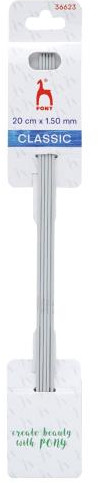 В комплект входят пять спиц одинаковой длины, без ограничителей. Классическая конфигурация — четыре спицы для распределения петель, образующих круговую вязку, и пятая спица, используемая для активного вязания. Важно помнить, что четкое распределение петель по четырем спицам обеспечивает равномерное натяжение и предотвращает искажения готового изделия. Пятая спица, работающая как основной инструмент, позволяет свободно манипулировать петлями и формировать нужный узор. За счет закругленных концов процесс вязания становится ещё более плавным и удобным, исключая вероятность случайного травмирования пальцев. С помощью носочных спиц Pony вы сможете создать уникальные и качественные вязаные изделия, воплощая в жизнь самые смелые идеи. Выбирая носочные спицы для вязания Pony, вы инвестируете в качество и удовольствие от творческого процесса.