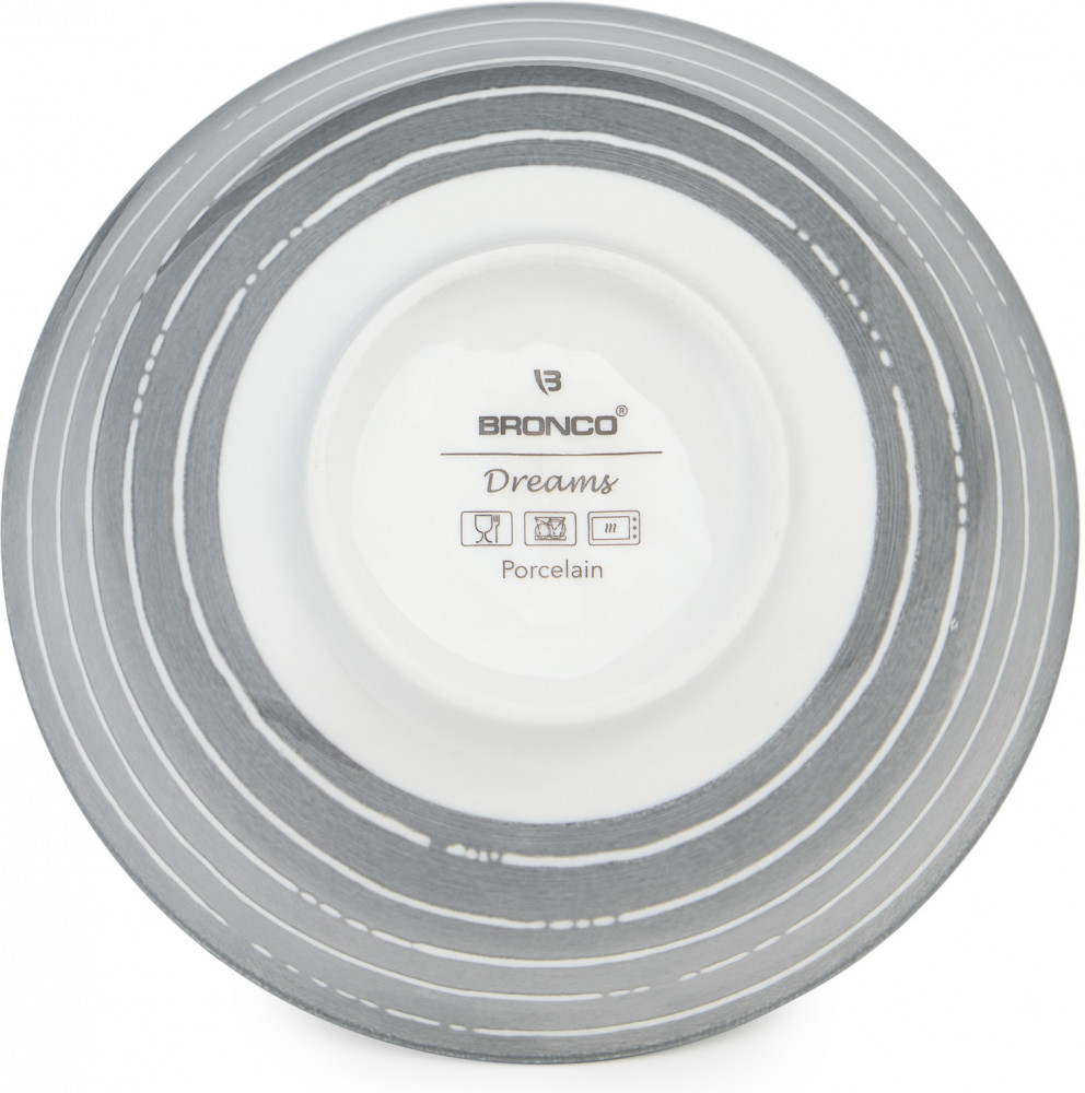 Серия: Dreams ТМ BRONCO «DREAMS» — идеальное решение для тех, кто ценит качество, стиль и практичность в сервировке. Изысканный серо-серебряный цвет, утонченный орнамент с восточными мотивами, геометрический узор и цветочные мотивы добавят нотку изысканности в вашу кухню. Коллекция выполнена из высококачественного фарфора, хороша как для повседневного использования, так и для особых случаев, таких как праздники и семейные ужины. Это прекрасный подарок! Посуда прошла сертификацию и безопасна для контакта с пищевыми продуктами, легко моется в посудомоечной машине и подходит для использования в микроволновой печи. |