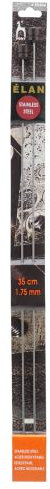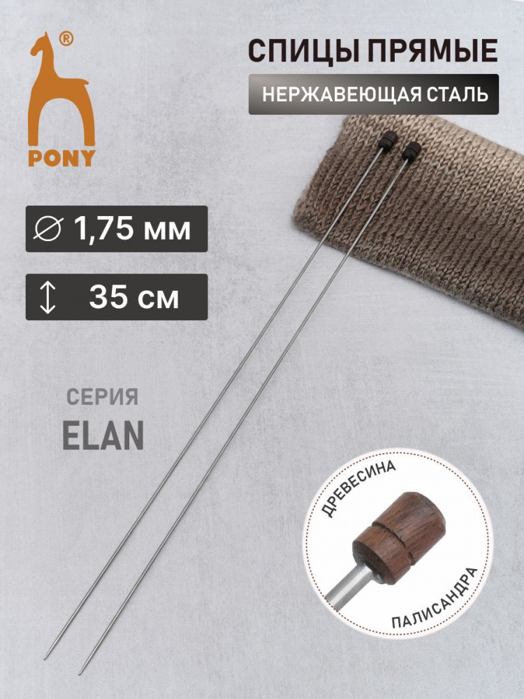 Спицы для вязания прямые Pony Elan подходят для вязания шарфов и крупных деталей одежды, таких как спинка и передняя часть свитера, жилетки или кофты. Спицы изготовлены из нержавеющей стали, которая отличается прочностью, легкостью и долгим сроком эксплуатации. Сталь очень гладкая, поэтому данные спицы при вязании не повреждают даже деликатную пряжу, сохраняют ее структуру и ворс. Благодаря легкому весу и гладкой поверхности спиц с ними удобно и приятно работать, а наличие ограничителей предотвращает соскальзывание вывязанного полотна и роспуск петель. Ваша нить будет двигаться свободно и плавно, создавая ровное полотно. Слегка закругленные концы спиц мягко скользят между петлями, не цепляясь за волокна. Кроме того, закругленные концы не травмируют пальцы. Специальные наконечники надежно фиксируют петли на концах спиц, предотвращая их случайное соскальзывание и распускание уже проделанной работы.