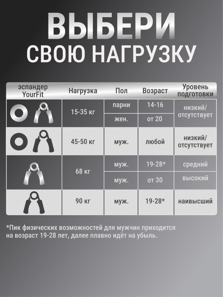 Металлическая пружина из пружинной стали обеспечивает стабильную эластичность и ресурс многократных сжатий. Рукояти — металлические, с противоскользящей накаткой для уверенного хвата. В круглой версии корпус полностью металлический, сплошной, без резиновых вставок. Линейка включает 4 уровня — 35, 45, 68 и 90 кг. Максимальная нагрузка указана в названии и подтверждает усилие, необходимое для полного сжатия эспандера. Тренировочная эффективность регулярная работа с эспандером развивает силу мышц кисти и предплечий, укрепляет связки для запястья, улучшает общую выносливость хвата. Подходит для силовых видов спорта, единоборств, скалолазания и функциональной подготовки. Компактен: этот спортивный эспандер легко брать на работу и в дорогу — эффективное дополнение для тренировок дома и в зале.