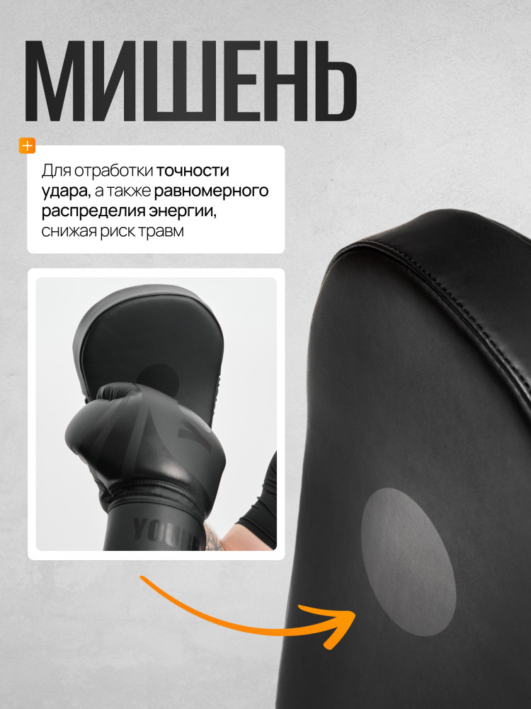 • мишень: на лапах есть специальная мишень, которая помогает развивать точность ударов, а также равномерно распределяет энергию удара, снижая риск травм. Это помогает тренировать как технику, так и силу ударов;