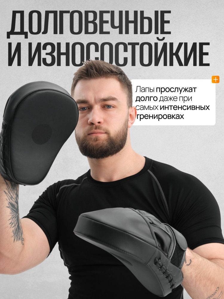 • материал: лапы выполнены из прочной экокожи высокого качества. Экокожа гарантирует отличную износостойкость и долговечность, при этом оставаясь экологически безопасной. Лапы легко очищаются и сохраняют свою форму даже после интенсивных тренировок;