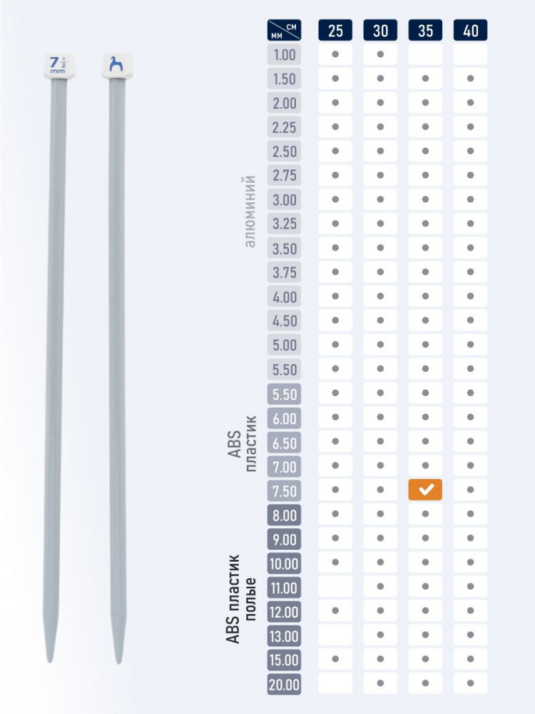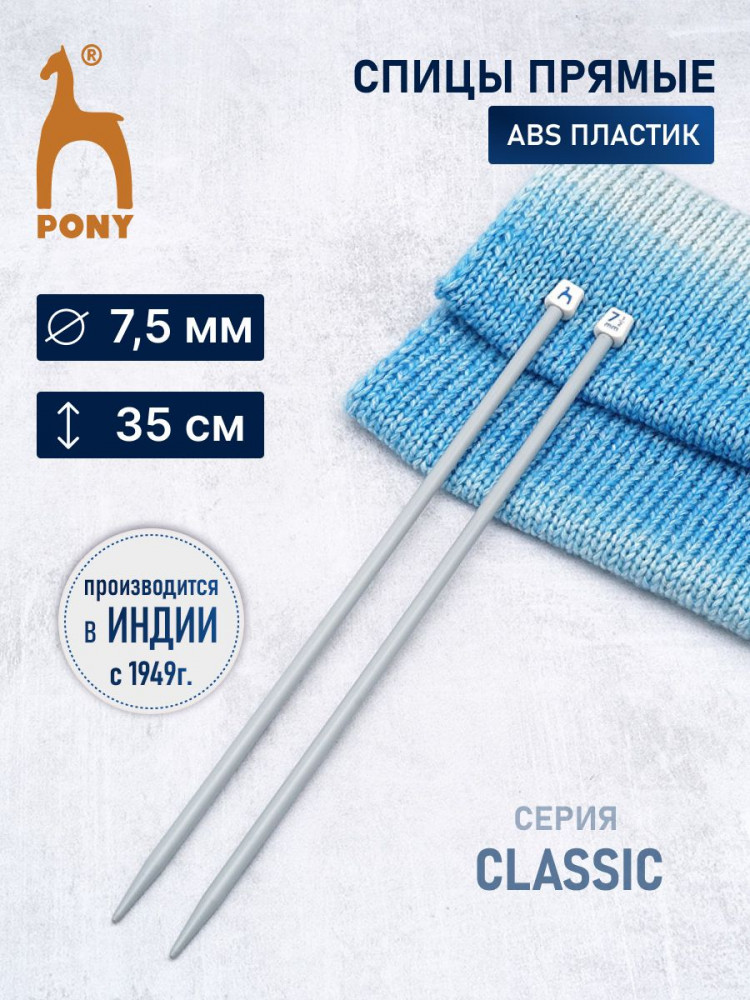 Спицы для вязания прямые от бренда PONY подходят для вязания шарфов и крупных деталей одежды, таких как спинка и передняя часть свитера, жилетки или кофты. Спицы изготовлены из пластика — это легкий и приятный на ощупь материал. Они не стучат при работе, не травмируют пальцы, их можно доверить даже детям. Концы в форме конуса обеспечивают удобное скольжение петель. Специальные пластиковые наконечники предотвращают соскальзывание петель, сохраняя вашу работу в целости. Размер спиц указан на наконечнике для быстрого и удобного поиска. Пластиковые спицы универсальны и подходят для работы с пряжей из разнообразных материалов, включая хлопок, акрил, шерсть и вискозу.