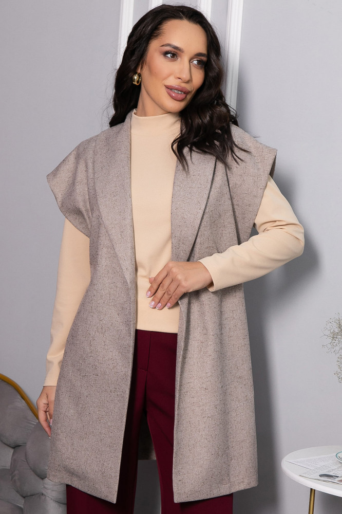 Этот твидовый жилет — сочетание классики и современного стиля. Шалевый воротник добавляет образу изысканности и уютной элегантности, а спущенное плечо создает легкую нотку дерзости и свободы. Пояс из основной ткани, закрепленный на двух полукольцах, подчеркивает талию и придает силуэту стройность. Этот жилет станет стильным акцентом в любом гардеробе, сочетая практичность и утонченность.