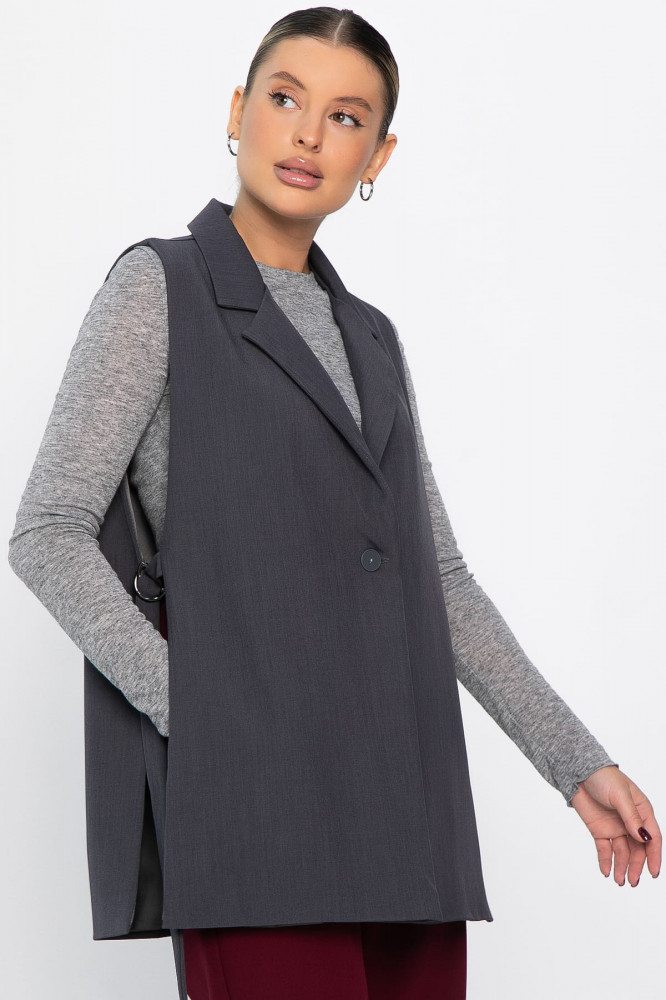 Наш новый офисный жилет в серой расцветке — воплощение делового совершенства и элегантности! Изготовленный из костюмной ткани с подкладкой, он обеспечит комфорт на протяжении всего рабочего дня. Спинка и полочки без боковых швов соединяются на поясе с полукольцами, создавая изысканный силуэт. Жилет идеально дополнит офисные платья, блузы и брючные костюмы, придавая вашему образу завершенность и выразительность.