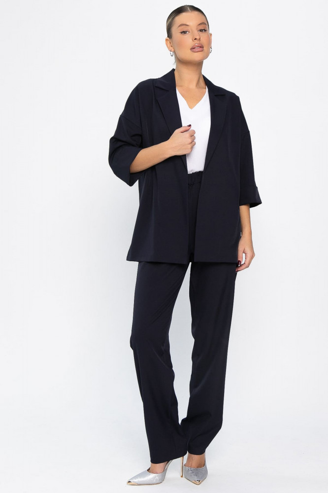 Стильный комплект состоит из пиджака свободного кроя и брюк прямого кроя, которые идеально дополняют друг друга! Пиджак оснащён английским воротником и спущенным плечом, что придаёт ему расслабленный и модный вид. Брюки по талии на резинке, что обеспечивает максимальный комфорт. В боковых швах расположены удобные карманы, а зауженный к низу силуэт добавляет элегантности и стройности. Этот комплект станет отличным выбором для любого случая, позволяя вам выглядеть стильно и уверенно!
