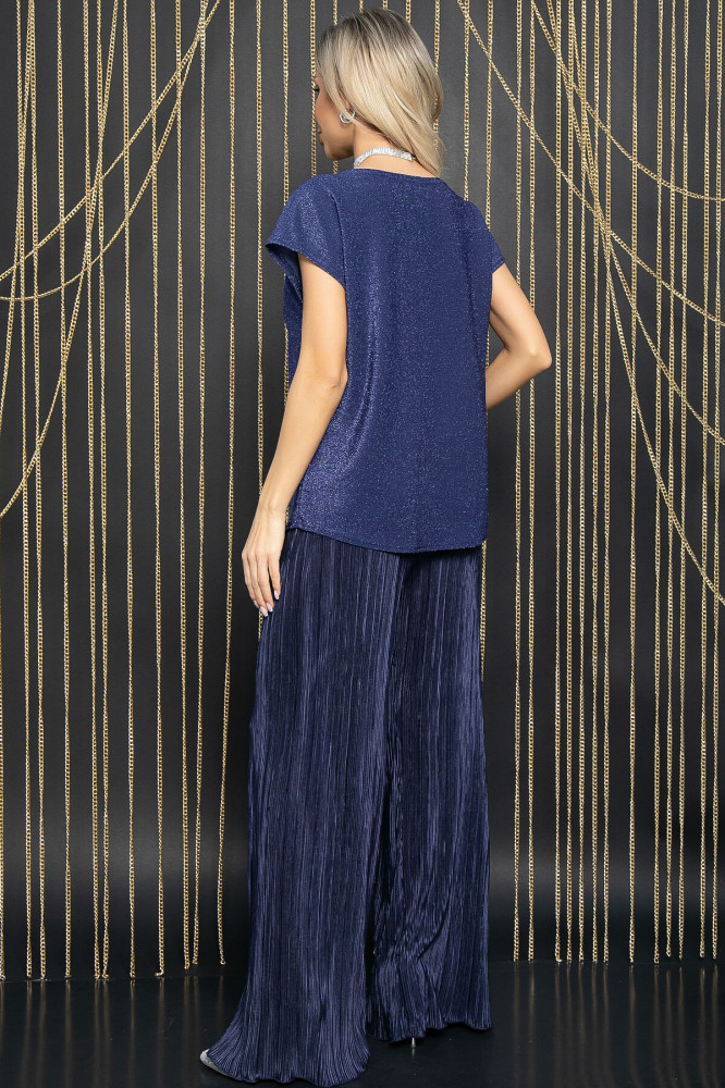 Этот комплект сочетает в себе превосходный стиль и удобство, обеспечивая вам безупречный облик на любом мероприятии. Костюм включает в себя мерцающую блузу и брюки на резинке из красивой ткани гофре. Стильная и изысканная блуза без рукавов, обязательно привлечет внимание своим утонченным дизайном и практичностью, в сочетании с широкими брюками и вечернего стиля создает элегантный и модный вид, который подходит как для официальных мероприятий, так и для повседневных прогулок. Создан, чтобы вы выглядели и чувствовали себя на высоте в любое время года и в любой ситуации!