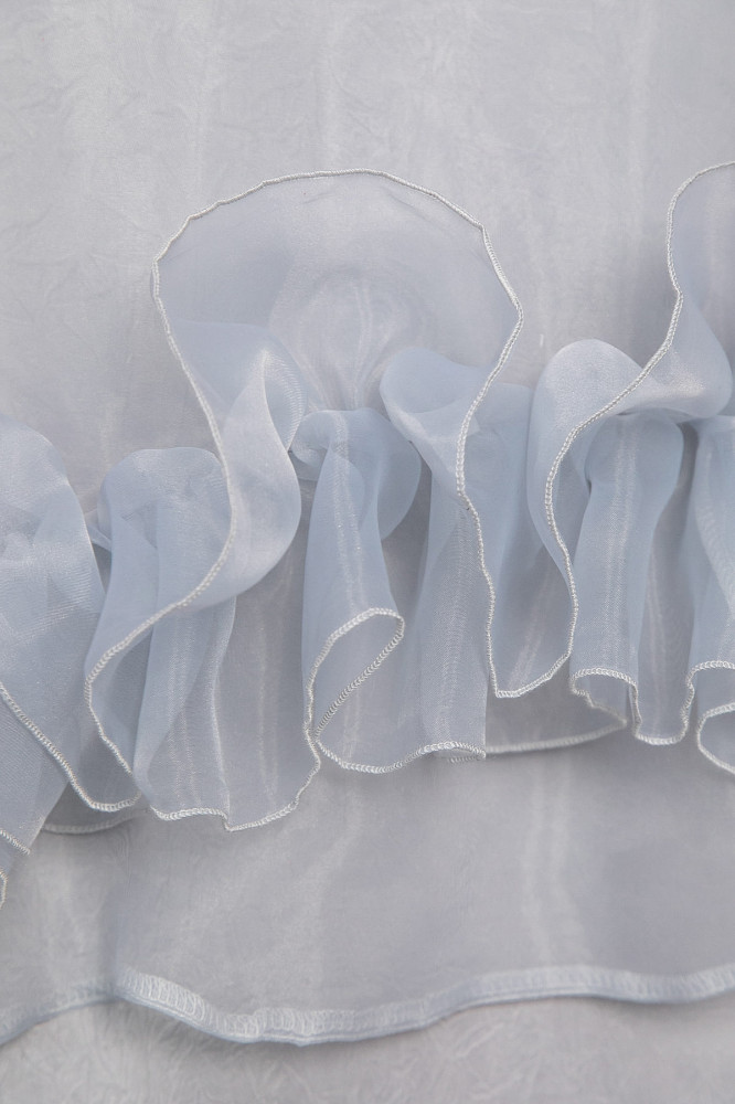 Декоративные элементы: пуговка на вороте блузки сзади, волан по низу блузки