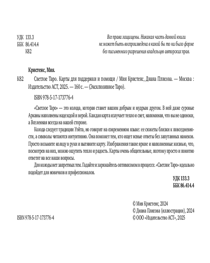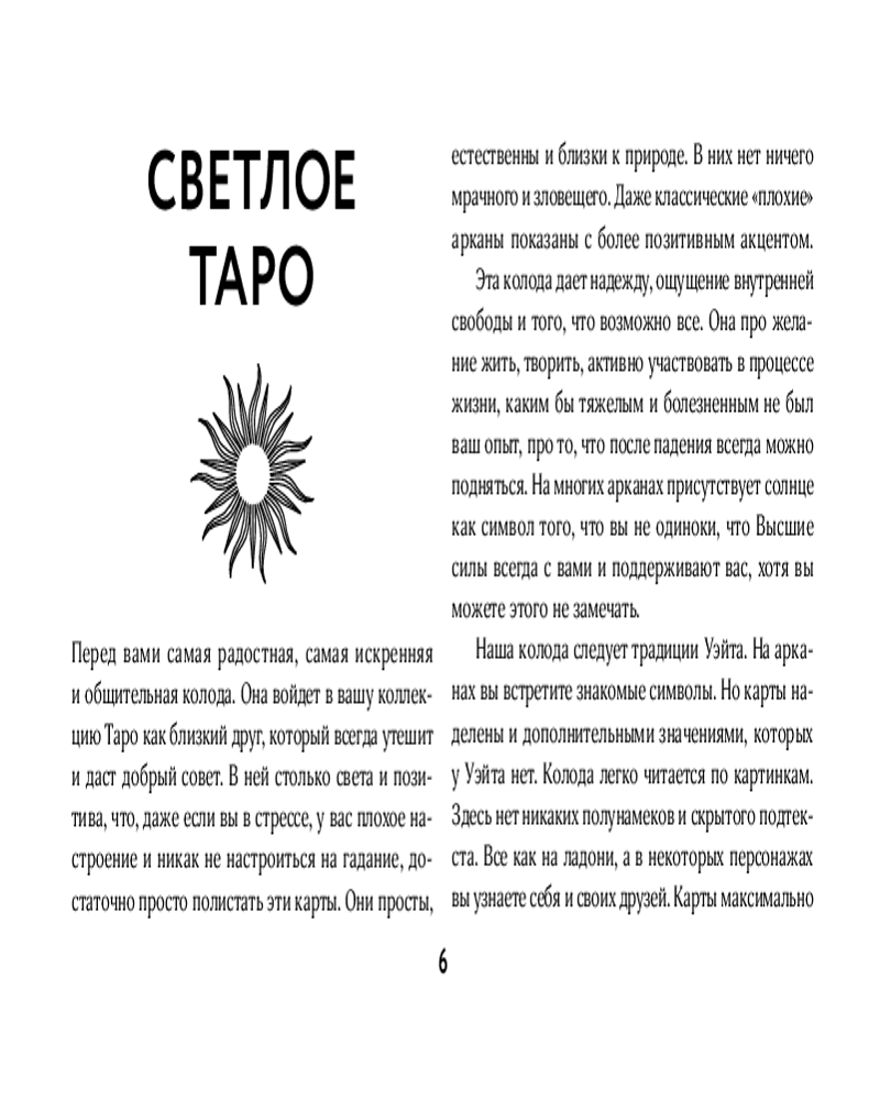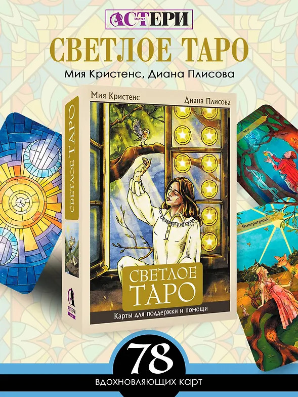 Серия: Эксклюзивное Таро (Коробка с картами + руководство) «Светлое Таро» — это колода, которая меняет взгляд на гадание. Это не холодный инструмент для предсказаний, а живой собеседник, готовый обнять вас и поддержать. Ее миссия — не только давать точные ответы на вопросы, но и вдохновлять, напоминая, что вы не одиноки, а Вселенная всегда на вашей стороне.