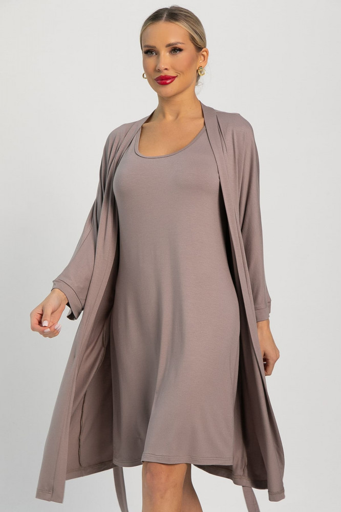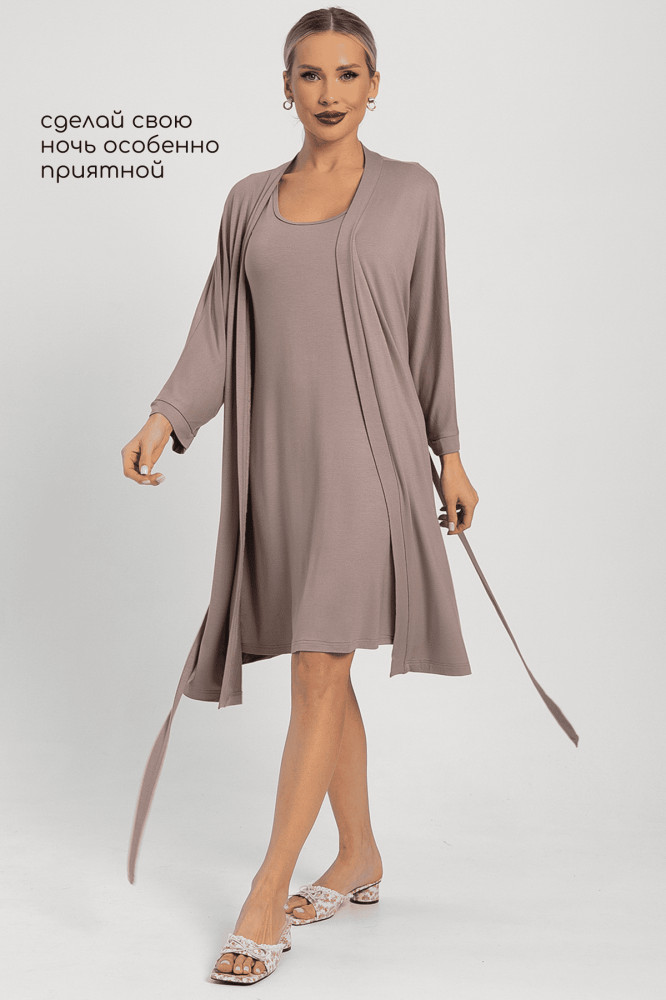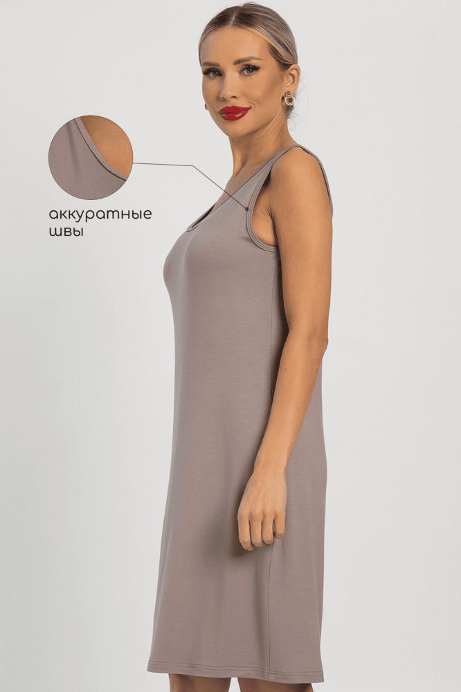 Домашнее платье-майка в оттенке «латте» с широкими бретелями — идеальный выбор для уюта и комфорта! Изготовленное из мягкой вискозы с добавлением лайкры. Легкое, дышащее и приятное на ощупь — ваш новый любимый наряд для расслабленных моментов и комфортного отдыха!