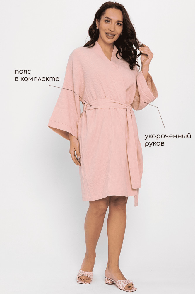 Халат-кимоно — воплощение изысканности и домашнего уюта! Женский халат из муслина, выполненный в стиле кимоно, представляет собой стильный и удобный элемент гардероба. Свободный крой и прямой силуэт обеспечивают легкость и комфорт при носке. V-образный вырез горловины добавляет образу женственности, а спущенные плечи создают непринужденный эффект. Длинные рукава с двойной притачной манжетой из основного материала придают изделию особую элегантность. Съемный пояс, пропущенный через шлевки, позволяет подчеркнуть талию или носить халат свободно. Идеально подходит для создания уютных домашних образов.