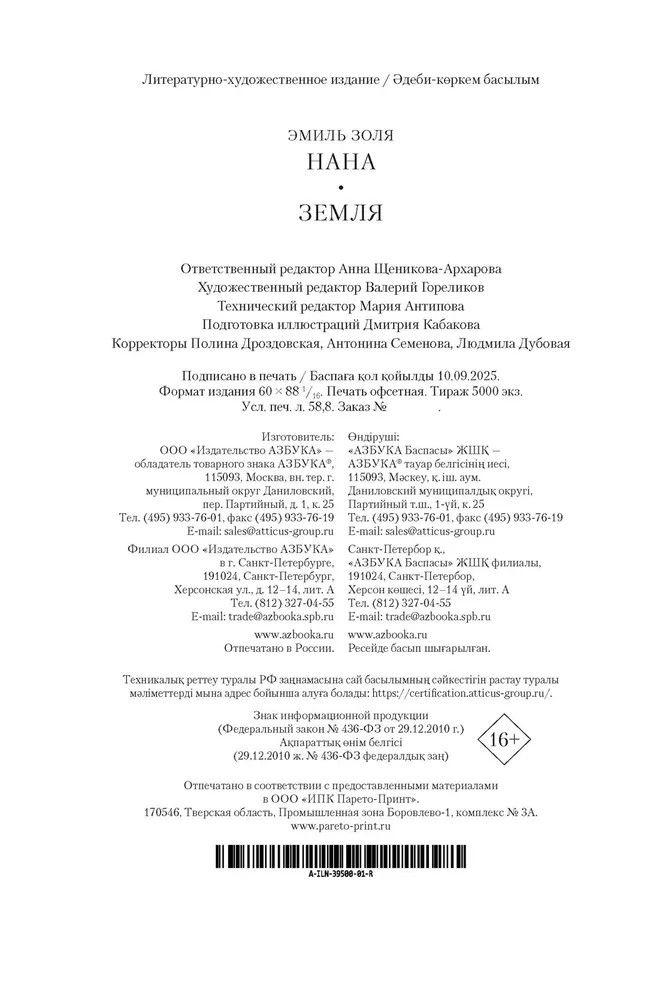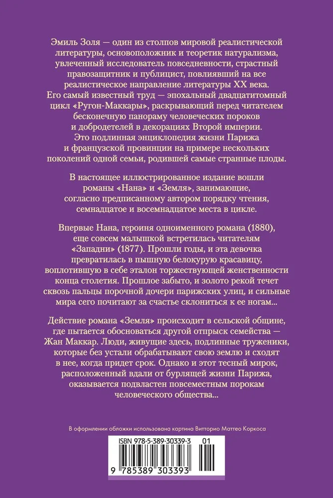 В настоящее иллюстрированное издание вошли романы «Нана» и «Земля», занимающие, согласно предписанному автором порядку чтения, семнадцатое и восемнадцатое места в цикле.