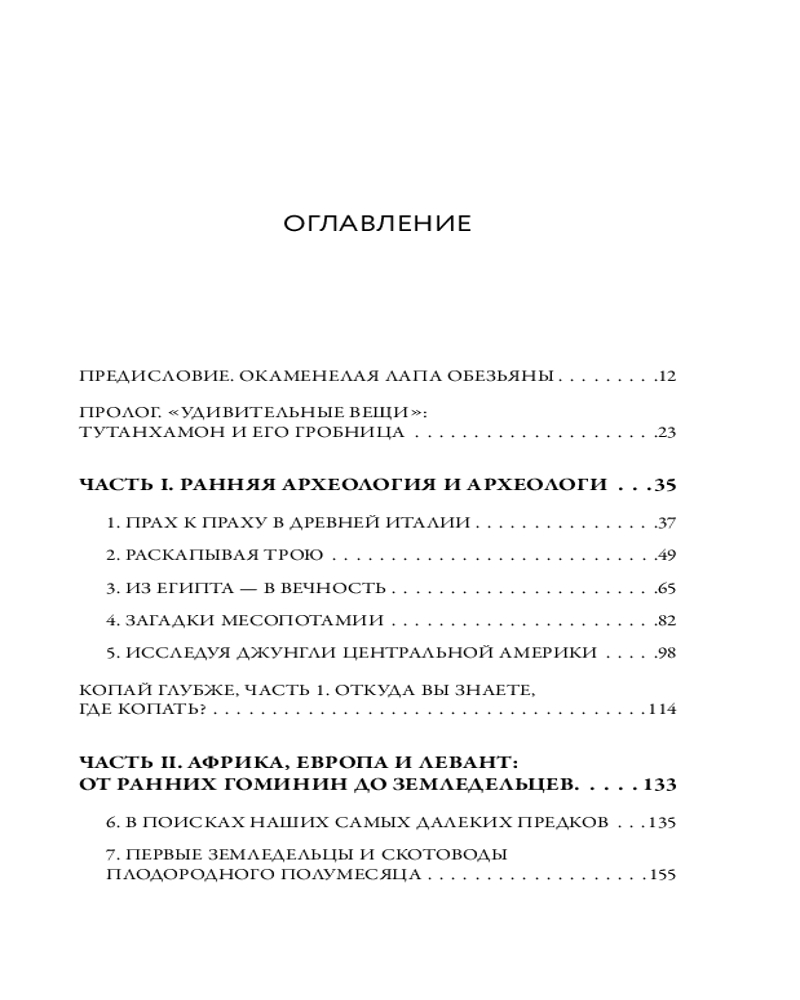 Клайн зовет нас в захватывающее турне по эпохам и континентам: Помпеи, Египет, Троя, Ур, Копан... А также доисторическое искусство пещер Шове, раскопки скелета раннего гоминида «Люси» в Эфиопии, отпечатки ног возрастом 3,6 миллиона лет в Танзании, древнейшее поселение Гёбекли-Тепе («Стоунхендж Турции»), корабль бронзового века из Улубуруна, остров Санторини, Теотиуакан, китайская терракотовая армия и ледяная мумия Этци, Мачу-Пикчу и линии Наска и многие другие новые открытия — всё это описано в этой книге. Его живое повествование дает ключи к пониманию археологии, сообщая о самых последних достижениях в исследованиях. Он также рассказывает о методах, используемых сегодня для обнаружения, датировки и сохранения артефактов прошлого. |
