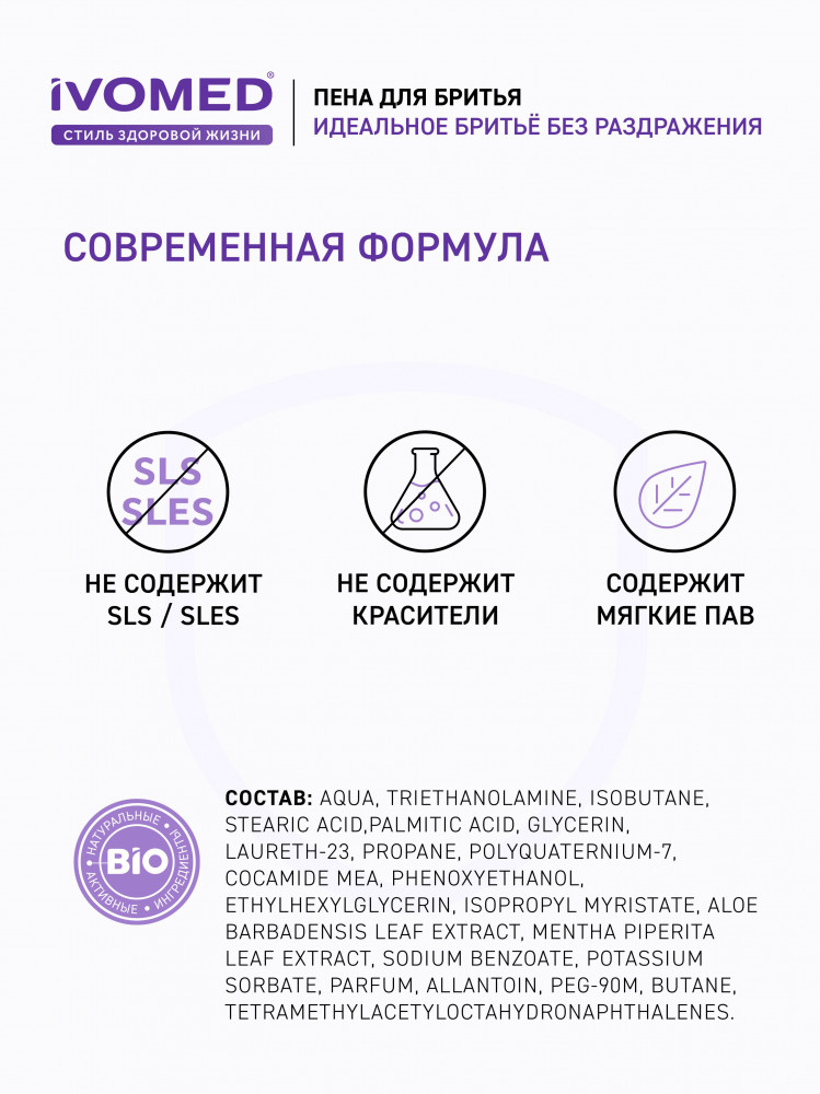 Ivomed Пена для бритья для всех типов кожи «Тонус и энергия»