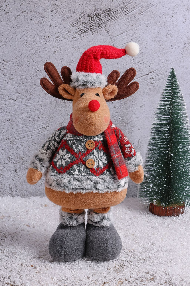 Декоративная фигурка «Олень» — очаровательный новогодний аксессуар, который создаёт праздничное настроение с первого взгляда. Мягкий, устойчивый и приятный на ощупь олень в уютном свитере и шапке станет ярким украшением дома, офиса или праздничной витрины. Он добавит уюта, тепла и сказочной атмосферы в любой интерьер. Такая фигурка — идеальный подарок для близких, коллег или детей, наполняющий пространство волшебством зимних праздников. Игрушка с выдвижными ногами в высоту составляет 58 см. Без выдвижения ног — 45 см. |