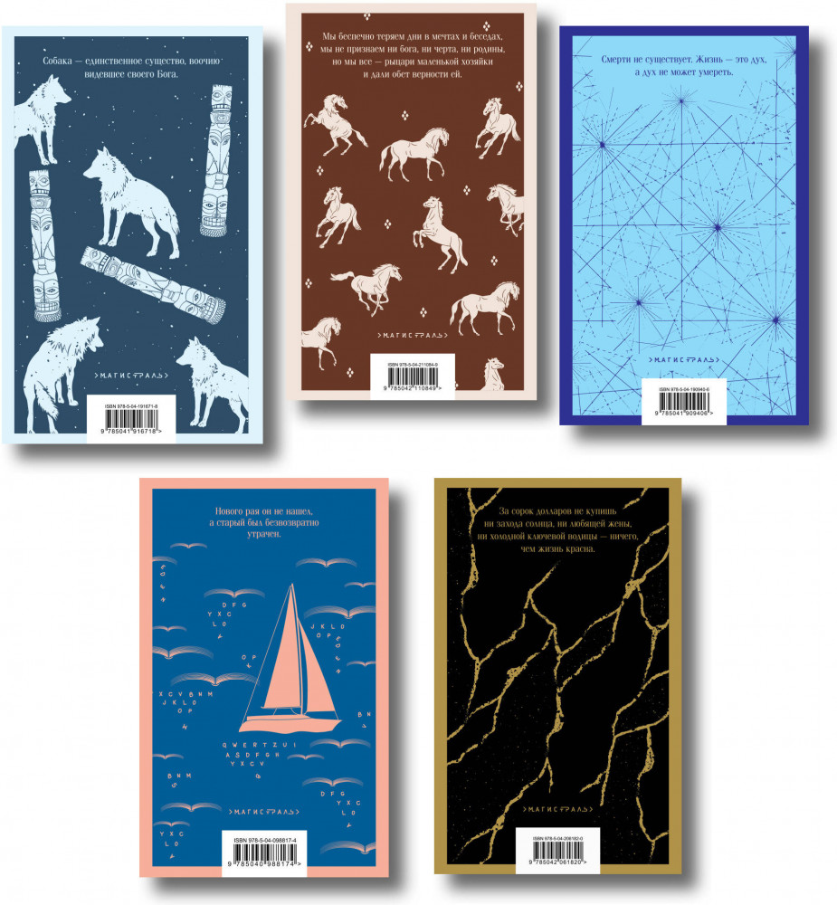 Серия: Магистраль. Главный тренд Есть писатели, чьё творчество может пронизывать всего одна, две или три основные темы, но в творчестве Джека Лондона представлено столько тем и мотивов, что каждый может найти что-то близкое для себя. «Северные рассказы», приключенческие романы, остросоциальная драма, даже жанр фантастики. В комплект входят следующие книги: «Мартин Иден», «Странник по звездам», «Маленькая хозяйка Большого дома», «Время не ждет», «Зов предков. Белый Клык». |