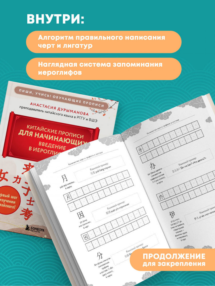 Серия: Пиши, учись! Обучающие прописи Анастасия Дурыманова, опытный преподаватель в РГГУ и ВШЭ, готова доказать, что китайский язык вовсе не сложный, а разобраться в письменности сможет даже ребенок. В комплекте вы приобретаете две книги Анастасии: «Прописи: мои первые китайские иероглифы» и «Китайские прописи для начинающих: введение в иероглифику». |