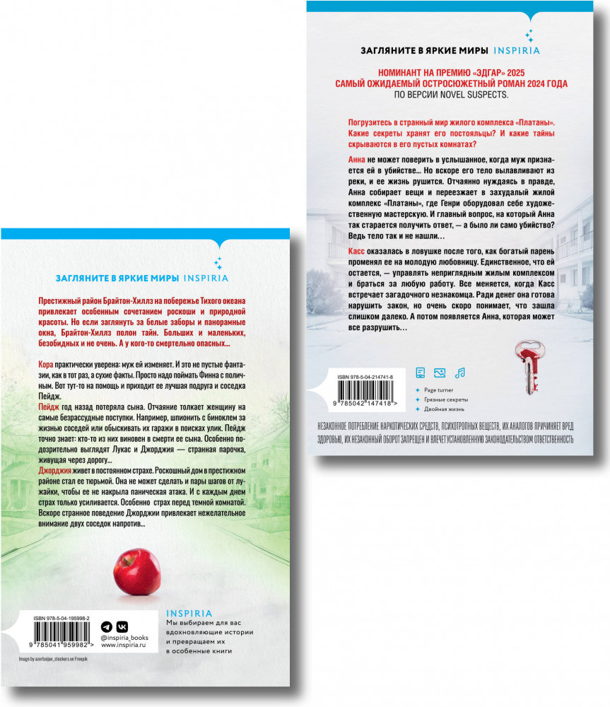Кора практически уверена: муж ей изменяет. И это не пустые фантазии как в тот раз, а сухие факты. Просто надо поймать Финна с поличным. Вот тут-то на помощь и приходит ее лучшая подруга и соседка Пейдж. Пейдж год назад потеряла сына. Отчаяние толкает женщину на самые безрассудные поступки. Например, шпионить с биноклем за жизнью соседей или обыскивать их гаражи в поисках улик. Пейдж точно знает: кто-то из них виновен в смерти ее сына. Особенно подозрительно выглядят Лукас и Джорджия — странная парочка, живущая через дорогу...