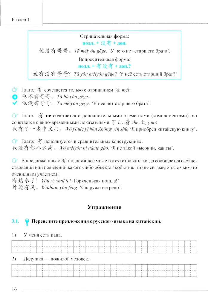 В предлагаемом пособии излагается базовая грамматика китайского языка, необходимая для подготовки к первому уровню экзамена HSK 1 нового формата 3.0. В состав уроков входят теоретическая часть и упражнения, дающие возможность отработать полученные знания на практике. Схемы, таблицы и иллюстративные примеры позволяют учащимся легко и эффективно овладевать различными аспектами китайской грамматики. Большинство упражнений предполагают автоматическую самопроверку или снабжены ответами в конце книги. Издание адресовано студентам вузов, слушателям языковых курсов, а также тем, кто самостоятельно изучает китайский язык на начальном этапе. |
