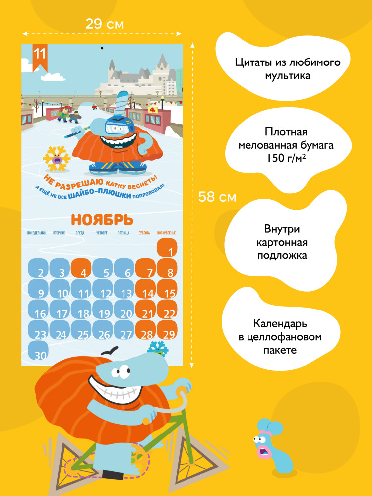 Серия: Детский календарь настенный 2026 (290×290) Календарь настенный на 2026 год — полезный подарок вашему ребенку на Новый год. Вместе с Бодо он запомнит месяцы, дни недели и научится следить за расписанием. Бодо не даст вашему ребенку заскучать — каждый месяц его ждет новое приключение и искрометная цитата от любимого персонажа мультфильма. Названия дней недели в календарной сетке написаны полностью, чтобы ваш ребенок смог быстрее их запомнить. |