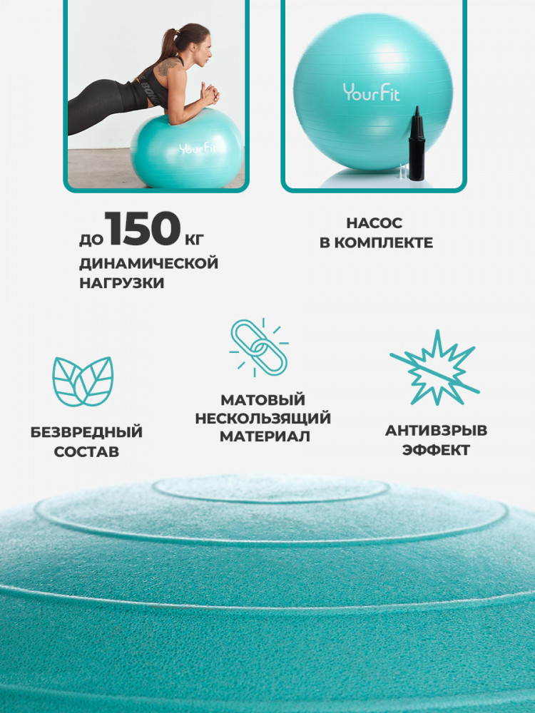 Антискользящее покрытие Матовая микрорельефная поверхность с кольцевой текстурой, как правило, скольжение ладоней и одежды, улучшает контроль в планках, скручиваниях и балансировках. Такой «массажный рельеф» придает легкий тактильный эффект во время тренировок. Фитбол — функциональный тренажер, который помогает усилить безопасную нагрузку, улучшить подвижность и координацию.
