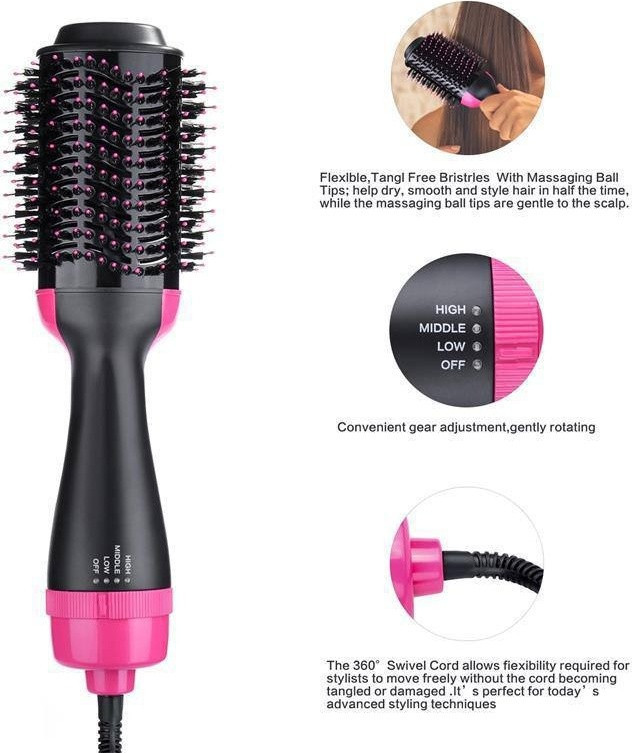 Представляет собой универсальный инструмент для профессионального ухода за волосами. Устройство сочетает в себе возможности фена и щетки одновременно, позволяя быстро и эффективно создавать объемные укладки, выпрямлять волосы, подкручивать кончики и моделировать прическу.  |