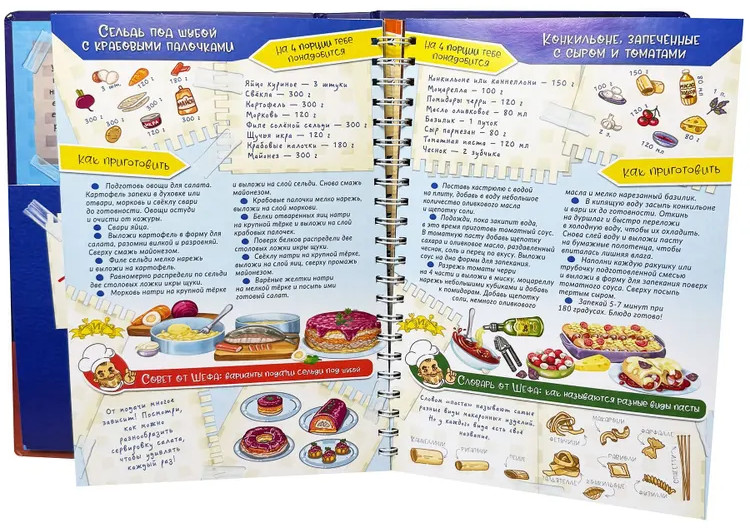 Серия: Детская библиотека увлечений Интерактивная кулинарная книга Готовим с шефом от Константина Ивлева — это уникальное издание, которое предлагает увлекательное путешествие в мир кулинарии для детей и взрослых. Эта книга — игрушка не просто сборник рецептов, а настоящий помощник на пути к созданию вкусных блюд. В книге Готовим с шефом вы найдете множество интересных и полезных рецептов, специально адаптированных для маленьких шеф-поваров. Каждый рецепт сопровождается подробным описанием этапов приготовления, что делает процесс готовки легким и увлекательным. Благодаря интерактивной форме изложения информации, даже самые юные кулинары смогут легко освоиться на кухне м начать готовить с удовольствием. |