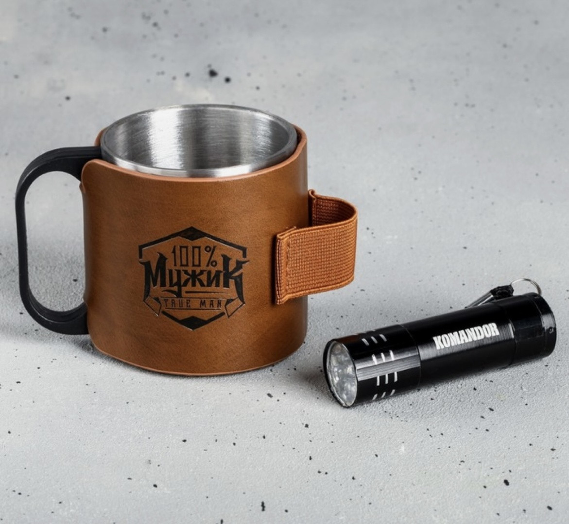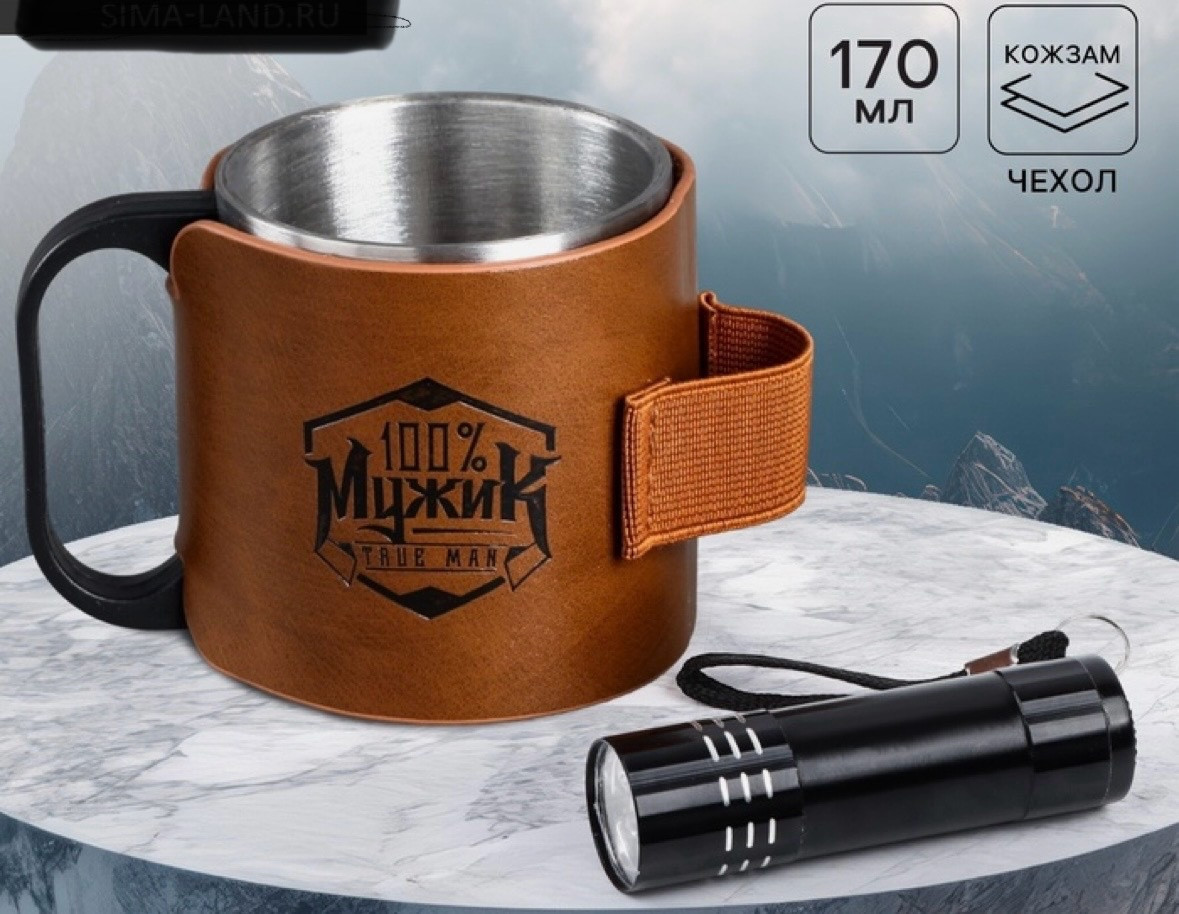 Кружка с фонариком «100% Мужик»новинка -33%
