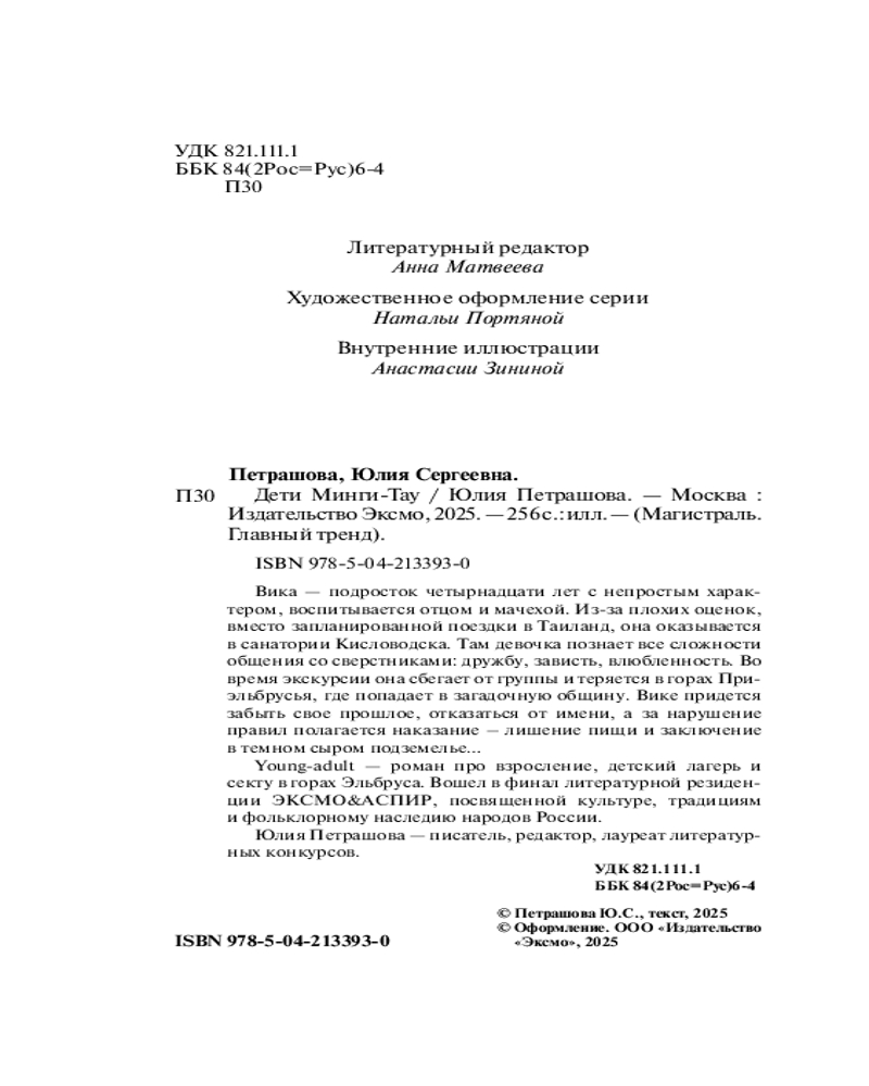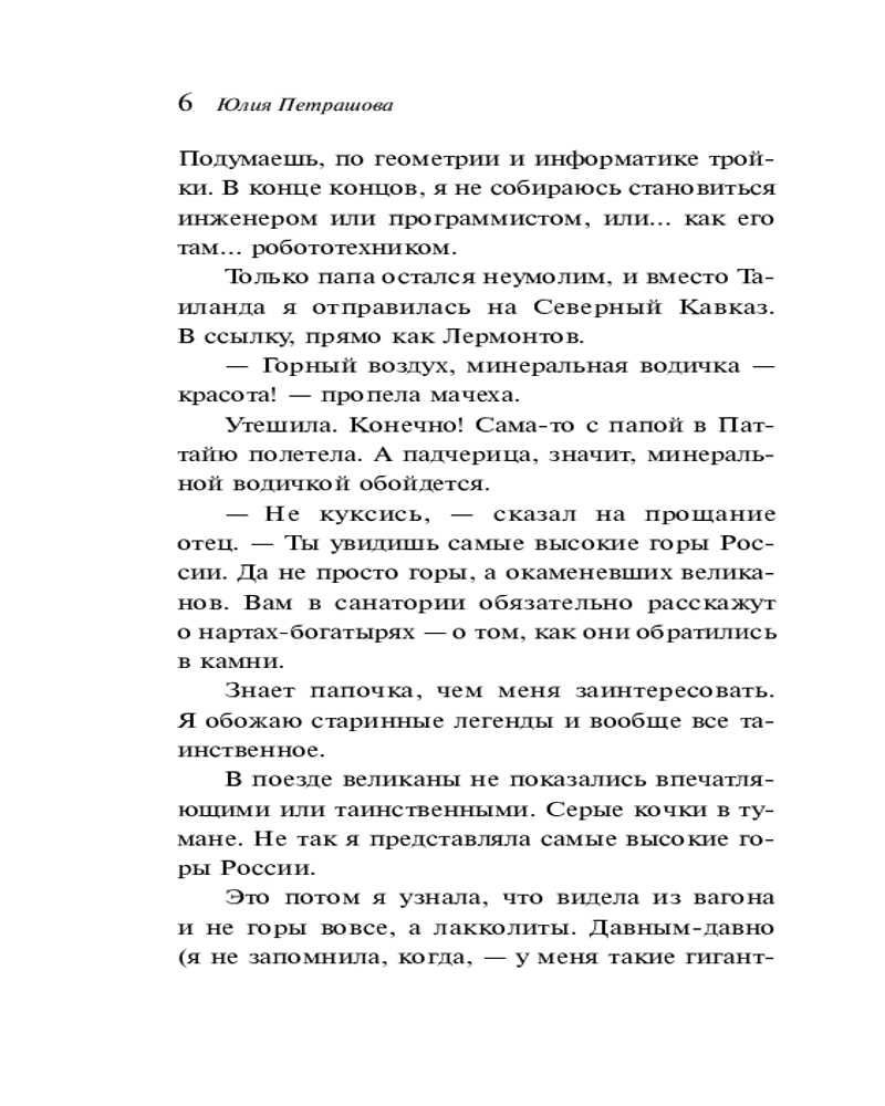 Серия: Магистраль. Главный тренд Вика — подросток четырнадцати лет с непростым характером, воспитывается отцом и мачехой. Из-за плохих оценок, вместо запланированной поездки в Таиланд, она оказывается в санатории Кисловодска. Там девочка познает все сложности общения со сверстниками, дружбу, зависть, влюбленность. Во время экскурсии она сбегает от группы и теряется в горах Приэльбрусья, где попадает в загадочную общину. Вике придется забыть свое прошлое, отказаться от имени, а за нарушение правил полагается наказание — лишение пищи и заключение в темном сыром подземелье... |